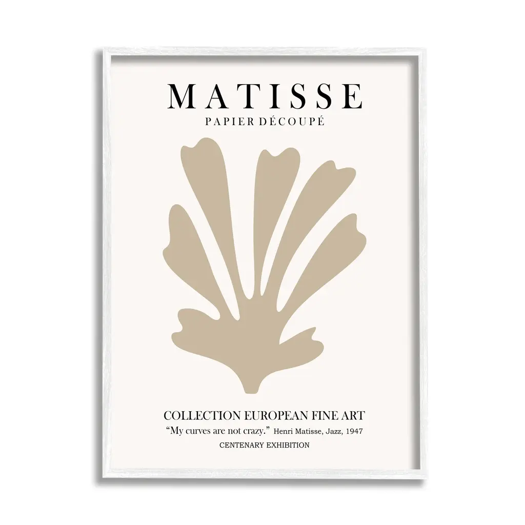 Stupell Abstract Botanical Design Exhibition Flyer Matisse Text Framed Wall Art - Tan - 16 X 20 - Grey