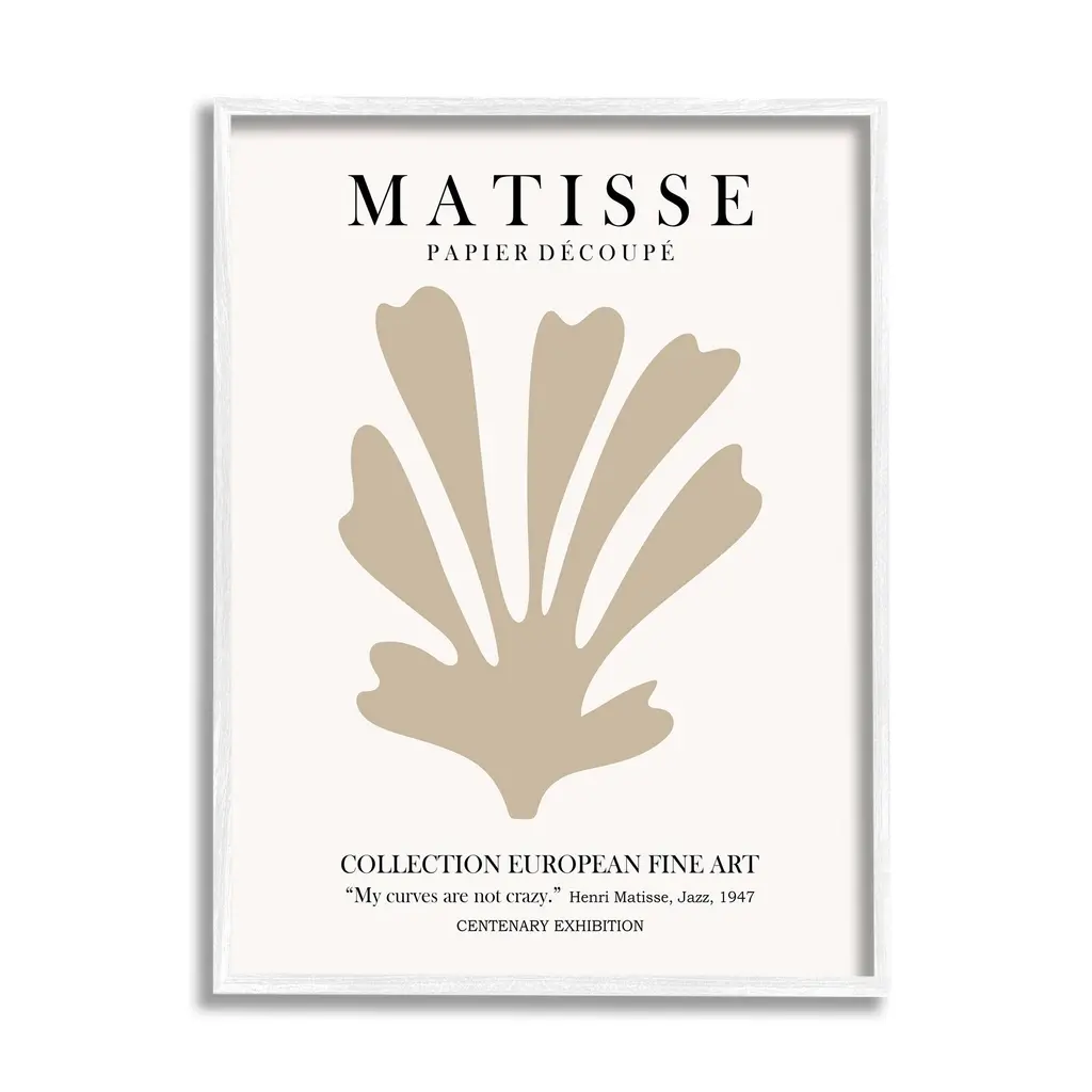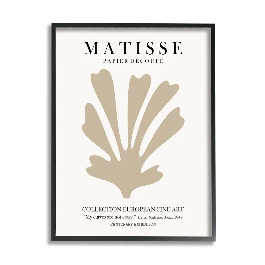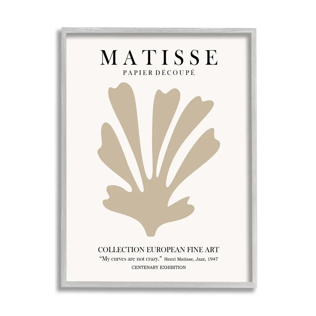 Stupell Abstract Botanical Design Exhibition Flyer Matisse Text Framed Wall Art - Tan - 24 X 30 - Grey