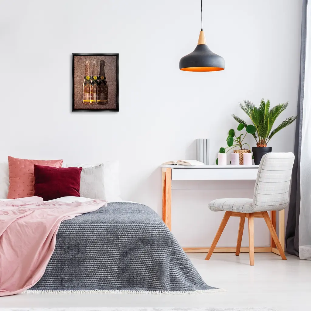 Elevate your home or office to the next level with Stupell Framed Floating Canvas Wall Art. Our premium hand-stretched canvas is mounted securely into a sturdy lightweight frame. The museum-style gap between the wrapped canvas and the box frame gives the illusion of floating artwork. Stupell Wall Art is made in the USA.Features: Dimensions: 17 x 1.7 x 21 Frame, 16 x 1.5 x 20 Canvas ArtFloating Frame Canvas Products are available in sizes 17"x21" and 25"x31". All Floating Frame Canvas Products have a 1.7" Depth.Wall Art is Ready to Hang with Hardware Free Hanging. No Installation required. For Easy Set Up Lean or Layer Artwork on Shelf or Against Wall. Artwork is Permently Fixed into the Frame.Our elevated 1.7" Thick Floating Frame is the perfect complement to our canvas style Wall Art. We use only the highest quality inks in house with industry leading printing solutions. Canvas is hand stretched over a durable wood foundation and then mounted securly into a Modern Box Frame. Made in the USA.Artwork Relates To: Glam, Fashion, Bottle, Liquor, Wine, Champagne, PatternDesign by Martina Pavlova