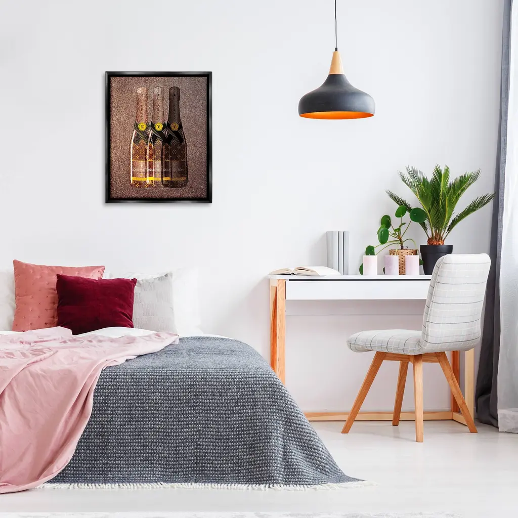 Elevate your home or office to the next level with Stupell Framed Floating Canvas Wall Art. Our premium hand-stretched canvas is mounted securely into a sturdy lightweight frame. The museum-style gap between the wrapped canvas and the box frame gives the illusion of floating artwork. Stupell Wall Art is made in the USA.Features: Dimensions: 17 x 1.7 x 21 Frame, 16 x 1.5 x 20 Canvas ArtFloating Frame Canvas Products are available in sizes 17"x21" and 25"x31". All Floating Frame Canvas Products have a 1.7" Depth.Wall Art is Ready to Hang with Hardware Free Hanging. No Installation required. For Easy Set Up Lean or Layer Artwork on Shelf or Against Wall. Artwork is Permently Fixed into the Frame.Our elevated 1.7" Thick Floating Frame is the perfect complement to our canvas style Wall Art. We use only the highest quality inks in house with industry leading printing solutions. Canvas is hand stretched over a durable wood foundation and then mounted securly into a Modern Box Frame. Made in the USA.Artwork Relates To: Glam, Fashion, Bottle, Liquor, Wine, Champagne, PatternDesign by Martina Pavlova