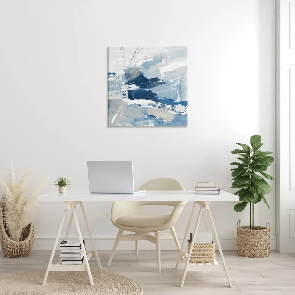 Proudly made in the USA, Our stretched canvas is created with the highest standards. We use only the highest quality inks and canvas on our in house Mimaki printers, and then hand cut and stretch each piece over a 1.5 inch thick wooden frame for hanging. The art comes ready to hang with no installation required. Not to mention, at this size, it is sure to be the focal point of any room!Features:Dimensions: 17 x 1.5 x 17 InchesStretched Canvas Sizes IncludeStandard: 17 x 1.5 x 17Large: 24 x 1.5 x 24X-Large: 30 x 1.5 x 30Oversized: 36 x 1.5 x 36Wall Art is Ready to Hang - No Installation or Hardware Needed. For Easy Set Up Lean or Layer Artwork on Shelf or Against Wall.Our stretched canvas is created with the highest standards. We use only the highest quality inks and canvas on our in house Mimaki printers, and then hand cut and stretch each piece over a 1.5 inch thick wooden frame for hanging. Made In USA.Artwork Relates To: Modern, Abstract, BlueDesign by Lanie Loreth