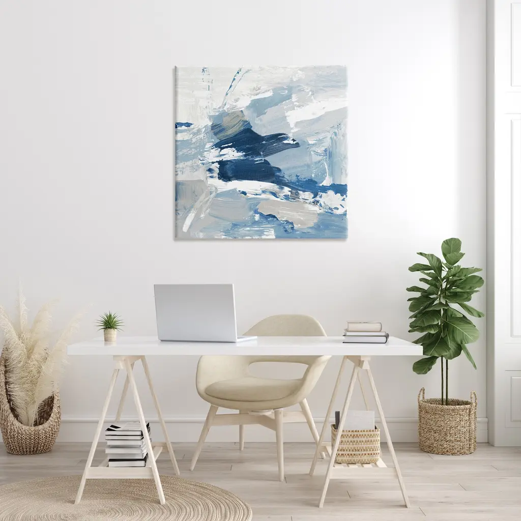 Proudly made in the USA, Our stretched canvas is created with the highest standards. We use only the highest quality inks and canvas on our in house Mimaki printers, and then hand cut and stretch each piece over a 1.5 inch thick wooden frame for hanging. The art comes ready to hang with no installation required. Not to mention, at this size, it is sure to be the focal point of any room!Features:Dimensions: 17 x 1.5 x 17 InchesStretched Canvas Sizes IncludeStandard: 17 x 1.5 x 17Large: 24 x 1.5 x 24X-Large: 30 x 1.5 x 30Oversized: 36 x 1.5 x 36Wall Art is Ready to Hang - No Installation or Hardware Needed. For Easy Set Up Lean or Layer Artwork on Shelf or Against Wall.Our stretched canvas is created with the highest standards. We use only the highest quality inks and canvas on our in house Mimaki printers, and then hand cut and stretch each piece over a 1.5 inch thick wooden frame for hanging. Made In USA.Artwork Relates To: Modern, Abstract, BlueDesign by Lanie Loreth