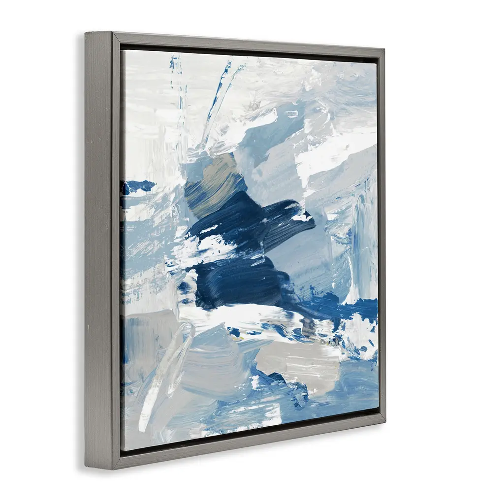 Elevate your home or office to the next level with Stupell Framed Floating Canvas Wall Art. Our premium hand-stretched canvas is mounted securely into a sturdy lightweight frame. The museum-style gap between the wrapped canvas and the box frame gives the illusion of floating artwork. Stupell Wall Art is made in the USA.Features: Dimensions: 18 x 1.7 x 18 Frame, 17 x 1.5 x 17 Canvas ArtFloating Frame Canvas Products are available in sizes 18"x18" and 25"x25". All Floating Frame Canvas Products have a 1.7" Depth.Wall Art is Ready to Hang with Hardware Free Hanging. No Installation required. For Easy Set Up Lean or Layer Artwork on Shelf or Against Wall. Artwork is Permently Fixed into the Frame.Our elevated 1.7" Thick Floating Frame is the perfect complement to our canvas style Wall Art. We use only the highest quality inks in house with industry leading printing solutions. Canvas is hand stretched over a durable wood foundation and then mounted securly into a Modern Box Frame. Made in the USA.Artwork Relates To: Modern, Abstract, Blue, PatternDesign by Lanie Loreth