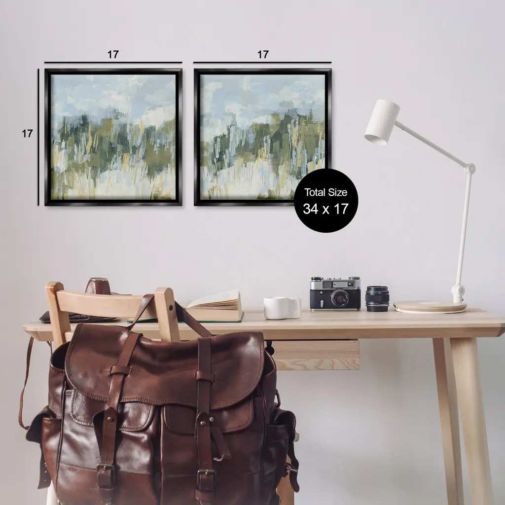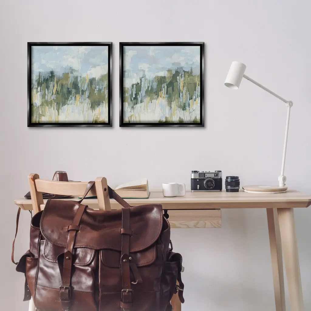 Elevate your home or office to the next level with Stupell Framed Floating Canvas Wall Art. Our premium hand-stretched canvas is mounted securely into a sturdy lightweight frame. The museum-style gap between the wrapped canvas and the box frame gives the illusion of floating artwork. Stupell Wall Art is made in the USA.Features: Dimensions: 2 Piece Set, Each Frame is 18 x 1.7 x 18Two Piece Floating Frame Canvas Products are available as 18"x18" or 25"x25" Panels. All Floating Frame Canvas Products have a 1.7" Depth.Wall Art is Ready to Hang with Hardware Free Hanging. No Installation required. For Easy Set Up Lean or Layer Artwork on Shelf or Against Wall. Artwork is Permently Fixed into the Frame.Our elevated 1.7" Thick Floating Frame is the perfect complement to our canvas style Wall Art. We use only the highest quality inks in house with industry leading printing solutions. Canvas is hand stretched over a durable wood foundation and then mounted securly into a Modern Box Frame. Made in the USA.Artwork Relates To: Painting, Modern, Landscape, Nature, AbstractDesign by June Erica Vess