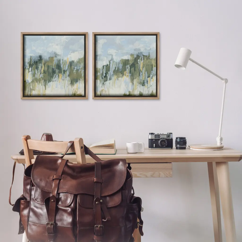 Elevate your home or office to the next level with Stupell Framed Floating Canvas Wall Art. Our premium hand-stretched canvas is mounted securely into a sturdy lightweight frame. The museum-style gap between the wrapped canvas and the box frame gives the illusion of floating artwork. Stupell Wall Art is made in the USA.Features: Dimensions: 2 Piece Set, Each Frame is 18 x 1.7 x 18Two Piece Floating Frame Canvas Products are available as 18"x18" or 25"x25" Panels. All Floating Frame Canvas Products have a 1.7" Depth.Wall Art is Ready to Hang with Hardware Free Hanging. No Installation required. For Easy Set Up Lean or Layer Artwork on Shelf or Against Wall. Artwork is Permently Fixed into the Frame.Our elevated 1.7" Thick Floating Frame is the perfect complement to our canvas style Wall Art. We use only the highest quality inks in house with industry leading printing solutions. Canvas is hand stretched over a durable wood foundation and then mounted securly into a Modern Box Frame. Made in the USA.Artwork Relates To: Painting, Modern, Landscape, Nature, AbstractDesign by June Erica Vess