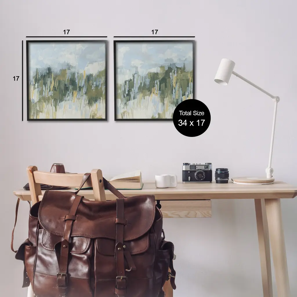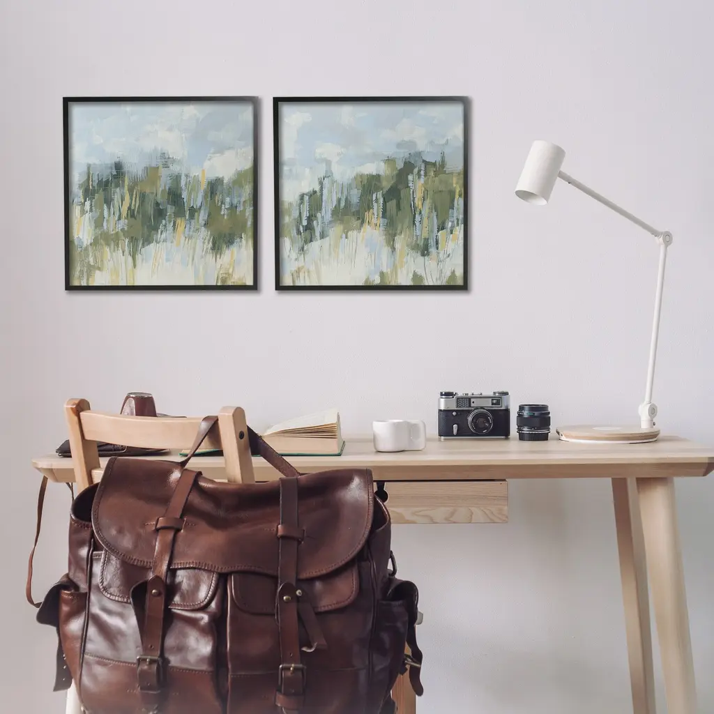 Fill any space in your home or office with our Framed Wall Art Sets. Our framed artwork is securely mounted into a 1.5-inch thick wood grain frame and ready to hang. Frames are available in three alluring styles: black, gray farmhouse and white. Stupell Wall Art is made in the USA.Features: Dimensions: 2 Piece Set, Each Panel is 12 x 1.5 x 12 FramedTwo Piece Framed Giclee Sets are available as 12"x12", 17"x17" or 24"x24" Panels. All Framed giclee Products have a 1.5" Depth.Wall Art is Ready to Hang with Hardware Free Hanging. No installation required. For Easy Set Up Lean or Layer Artwork on Shelf or Against Wall.Curated Wall Art Sets make it easy for you complete the theme for any room. Our giclée prints are carefully mounted on a durable MDF backing, and then perfectly finished in a 1.5 inch thick woodgrain frame. Mounted frame colors include black, gray farmhouse and white. Made In USA.Artwork Relates To: Painting, Modern, Landscape, Nature, AbstractDesign by June Erica Vess