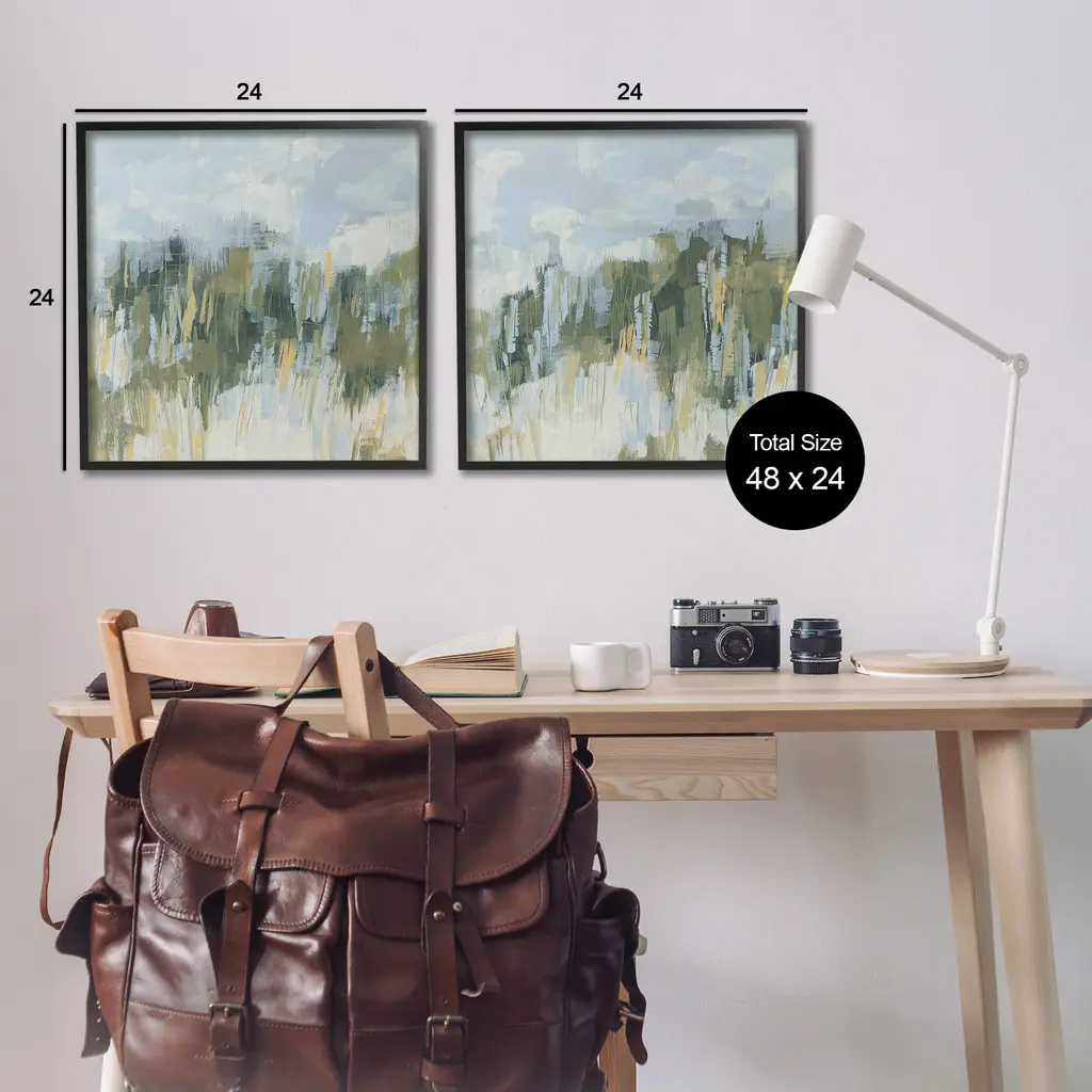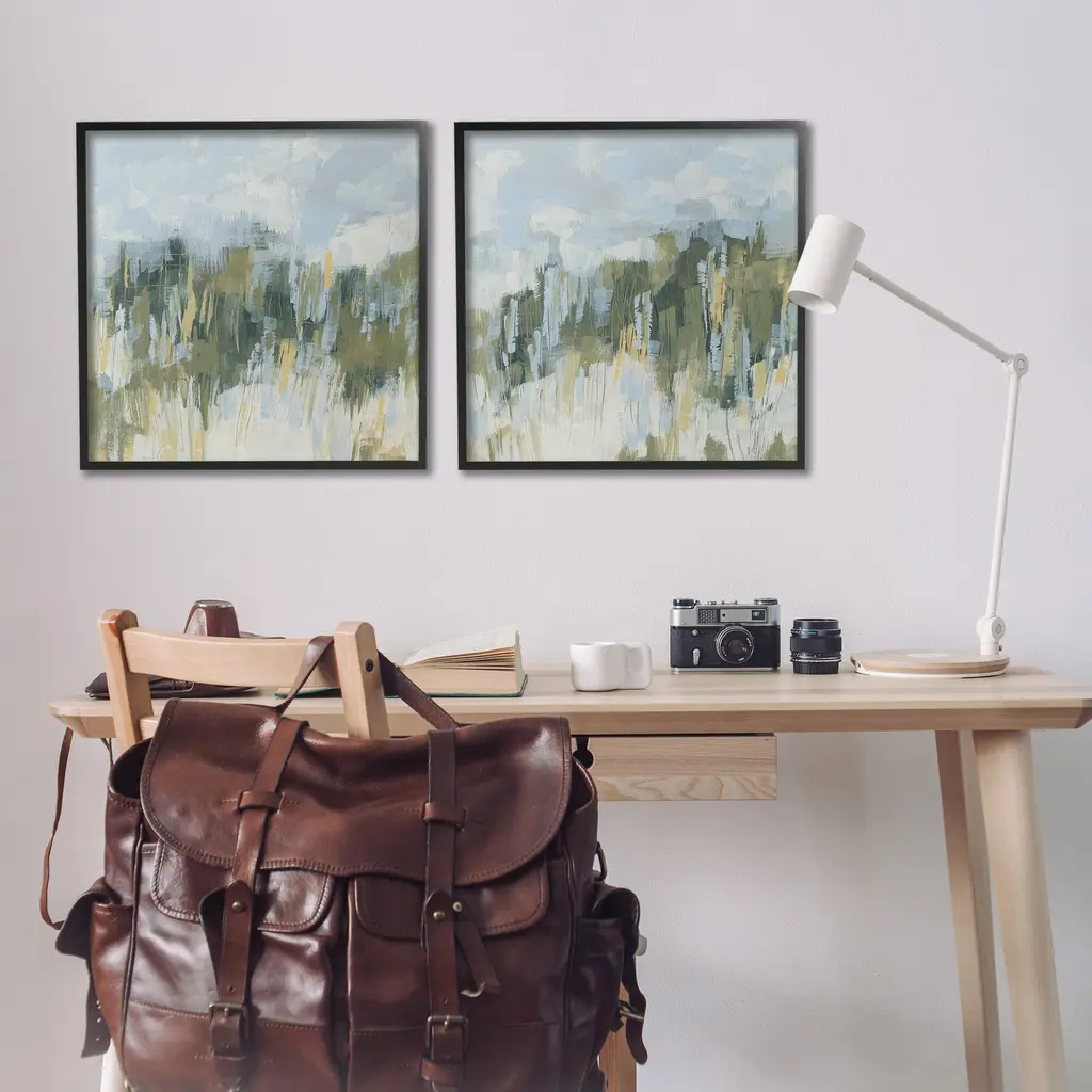 Fill any space in your home or office with our Framed Wall Art Sets. Our framed artwork is securely mounted into a 1.5-inch thick wood grain frame and ready to hang. Frames are available in three alluring styles: black, gray farmhouse and white. Stupell Wall Art is made in the USA.Features: Dimensions: 2 Piece Set, Each Panel is 12 x 1.5 x 12 FramedTwo Piece Framed Giclee Sets are available as 12"x12", 17"x17" or 24"x24" Panels. All Framed giclee Products have a 1.5" Depth.Wall Art is Ready to Hang with Hardware Free Hanging. No installation required. For Easy Set Up Lean or Layer Artwork on Shelf or Against Wall.Curated Wall Art Sets make it easy for you complete the theme for any room. Our giclée prints are carefully mounted on a durable MDF backing, and then perfectly finished in a 1.5 inch thick woodgrain frame. Mounted frame colors include black, gray farmhouse and white. Made In USA.Artwork Relates To: Painting, Modern, Landscape, Nature, AbstractDesign by June Erica Vess