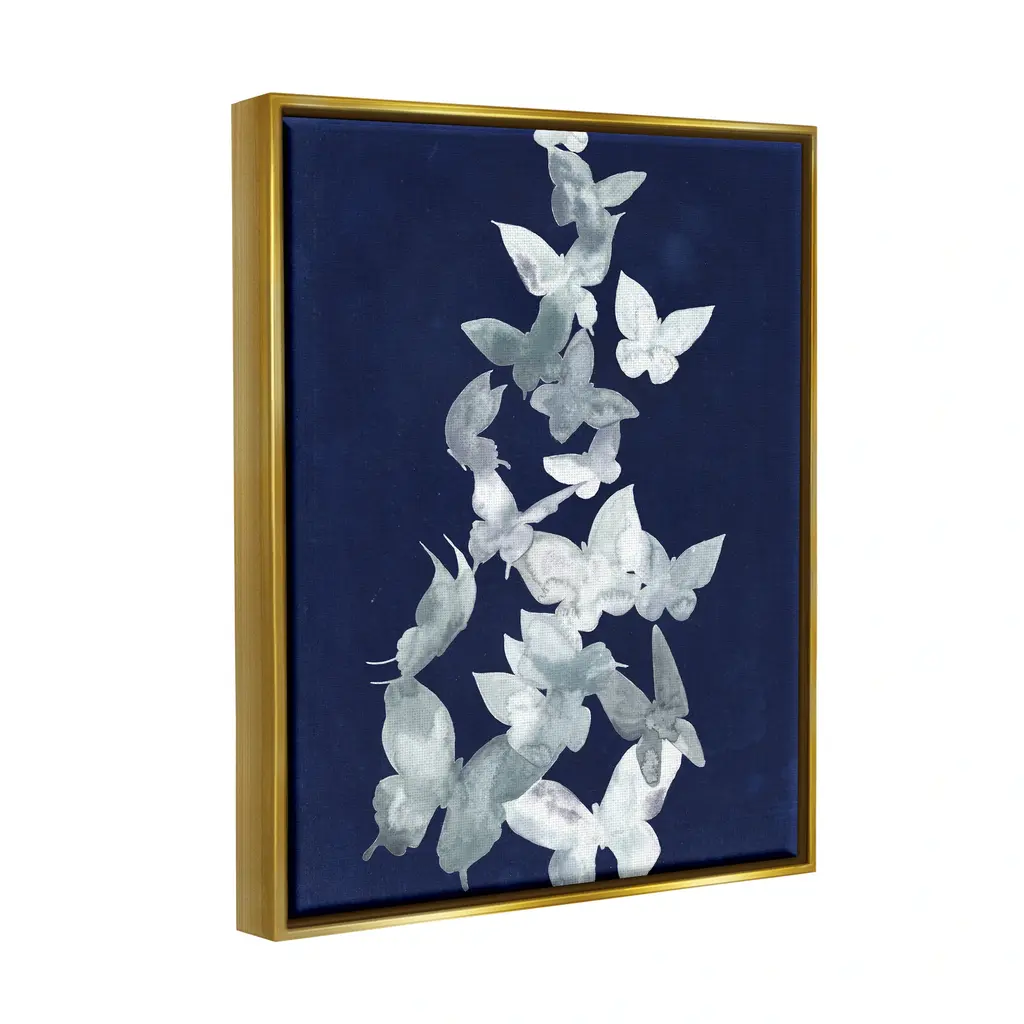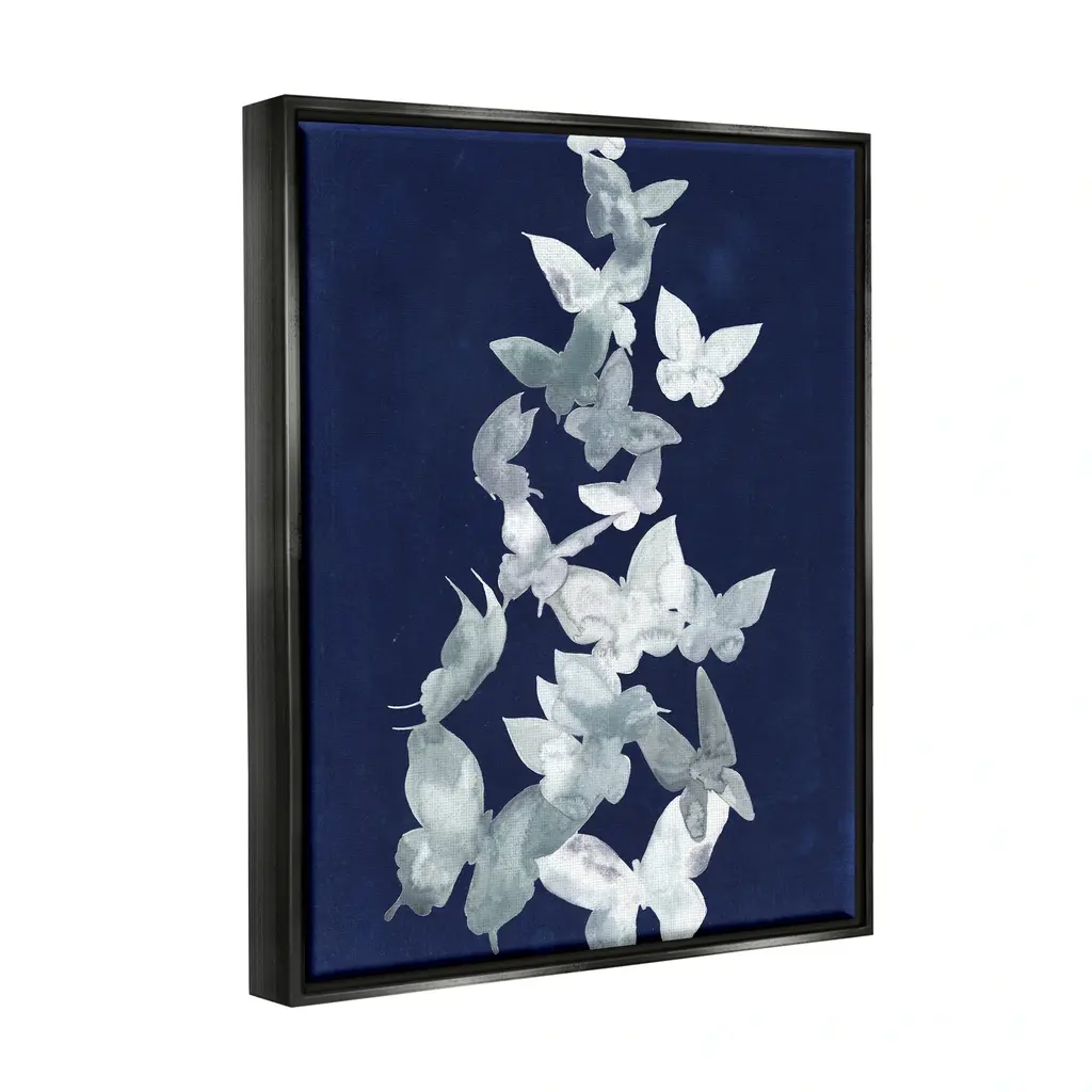 Elevate your home or office to the next level with Stupell Framed Floating Canvas Wall Art. Our premium hand-stretched canvas is mounted securely into a sturdy lightweight frame. The museum-style gap between the wrapped canvas and the box frame gives the illusion of floating artwork. Stupell Wall Art is made in the USA.Features: Dimensions: 17 x 1.7 x 21 Frame, 16 x 1.5 x 20 Canvas ArtFloating Frame Sizes Include Standard: 17 x 1.7 x 21 Oversized: 25 x 1.7 x 31Wall Art is Ready to Hang - No Installation or Hardware Needed. For Easy Set Up Lean or Layer Artwork on Shelf or Against Wall.Our elevated 1.7" Thick Floating Frame is the perfect complement to our canvas style Wall Art. We use only the highest quality inks in house with industry leading printing solutions. Canvas is hand stretched over a durable wood foundation and then mounted securly into a Modern Box Frame. Made in the USA.Artwork Relates To: Animal, Butterfly, Abstract, Modern, BlueDesign by Grace Popp