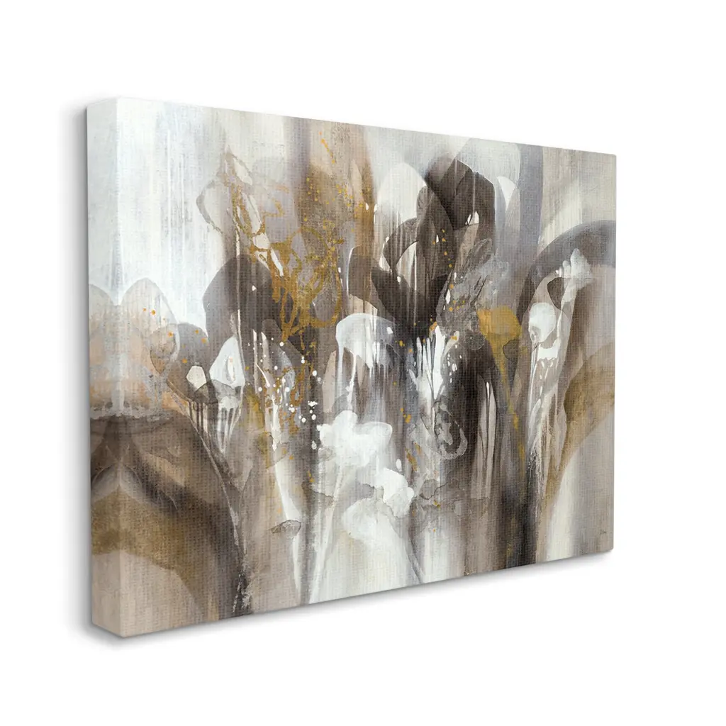 Stupell Abstract Cascading Shapes Modern Brown White Black Painting Canvas Wall Art - 48 X 36