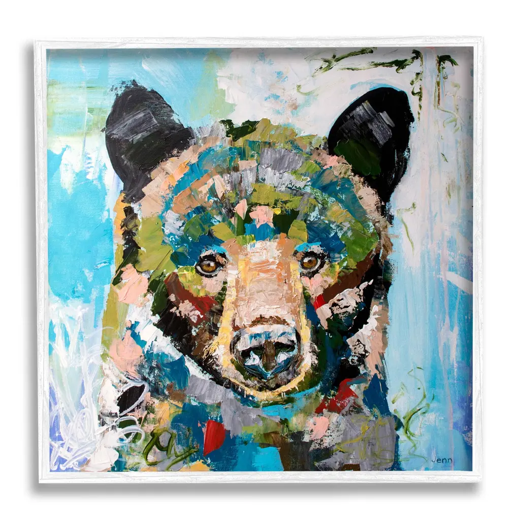 Our Framed Giclee Wall Art adds a touch of class to any space in your home or office. Frames are available in three alluring styles: black, gray farmhouse and white. Our textured artwork will add more depth and dimension to any space. Each piece is mounted with a 1.5 inch thick wood grain frame that is ready to hang! Looking for a statement piece? We have oversized artwork available.Features: Dimensions: 12 x 1.5 x 12 FramedFramed Giclee Sizes Include Standard: 12 x 1.5 x 12 Large: 17 x 1.5 x 17 Oversized: 24 x 1.5 x 24Wall Art is Ready to Hang - No Installation or Hardware Needed. For Easy Set Up Lean or Layer Artwork on Shelf or Against Wall.Our giclée prints are carefully mounted on a durable MDF backing, and then perfectly finished in a 1.5 inch thick woodgrain frame. Mounted frame colors include black, gray farmhouse and white. Made In USA.Artwork Relates To: Animal, Mammal, Wildlife, Painting, Modern, Urban, Street Style, Painting, BearDesign by Jen Seeley