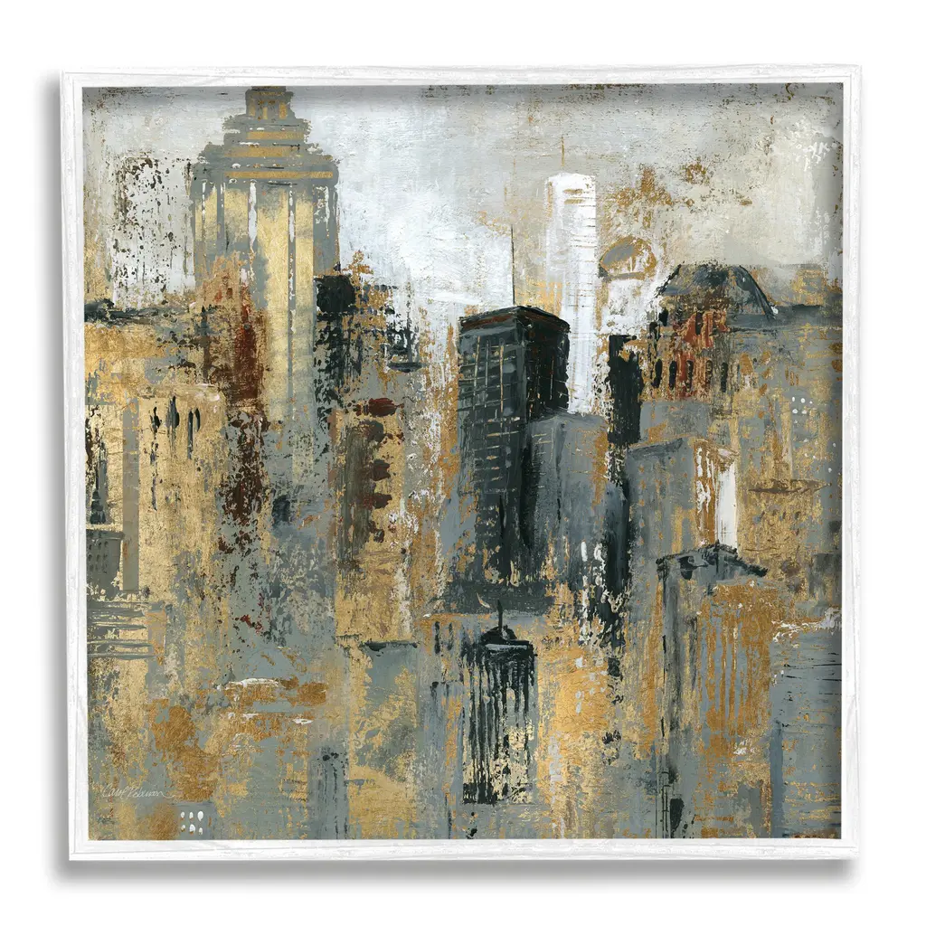 Stupell Abstract Cityscape Urban Buildings Modern Architecture Framed Wall Art, Design By Carol Robinson - Gold - 17 X 17 - White