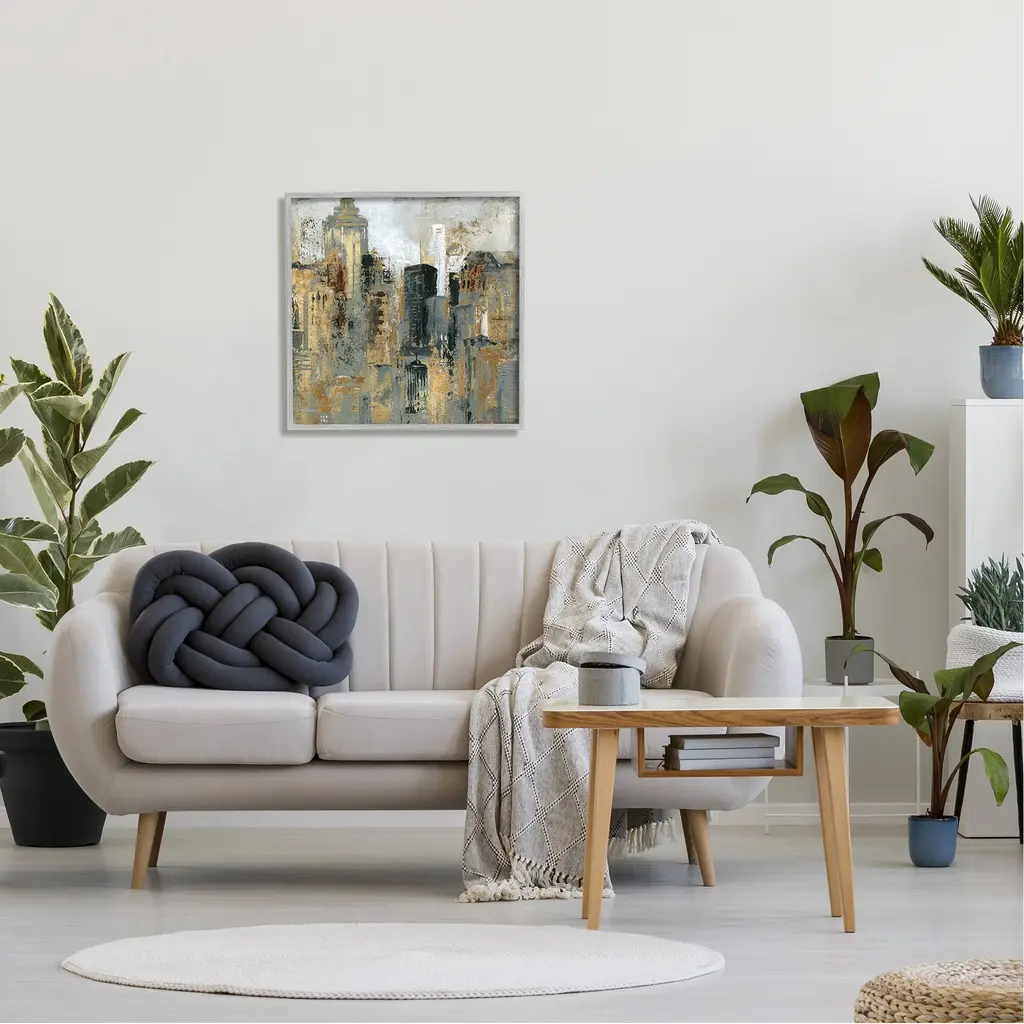 Stupell Abstract Cityscape Urban Buildings Modern Architecture Framed Wall Art, Design By Carol Robinson - Gold - 24 X 24 - Grey
