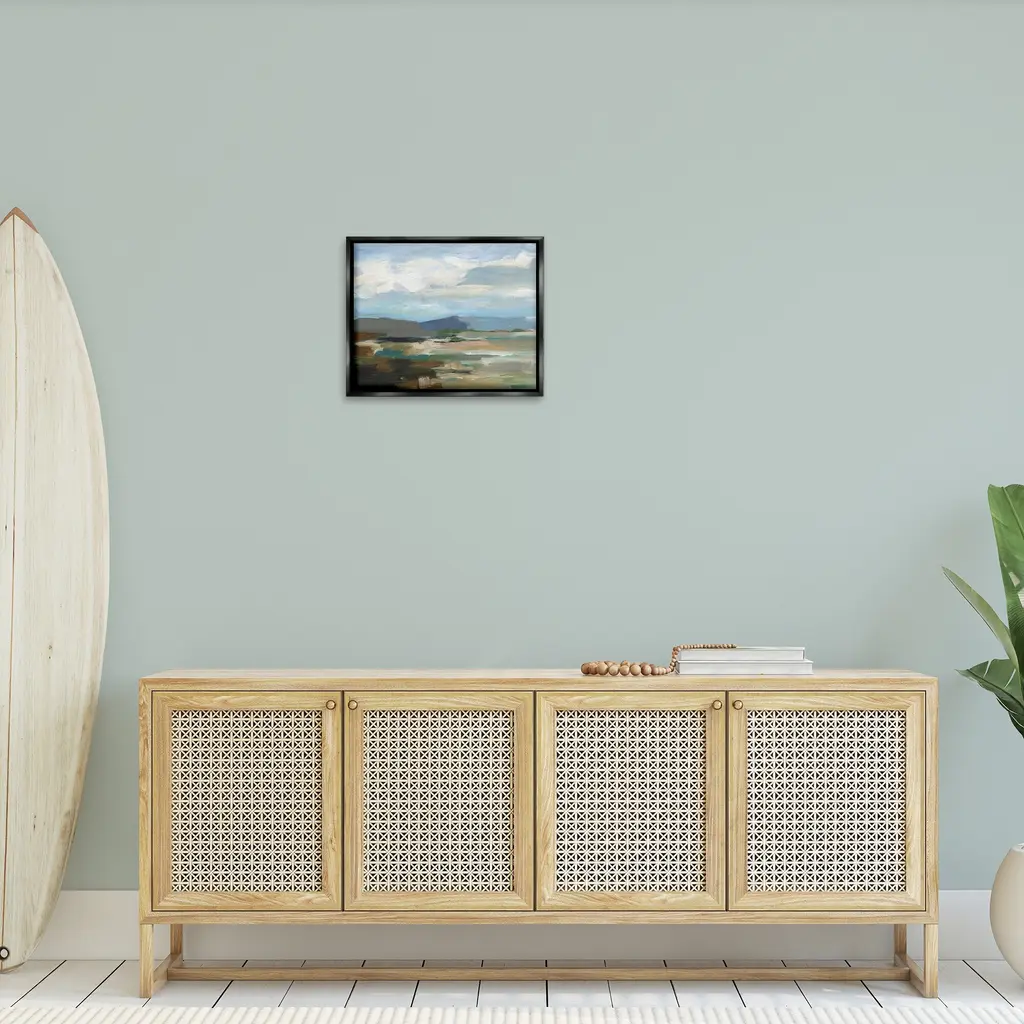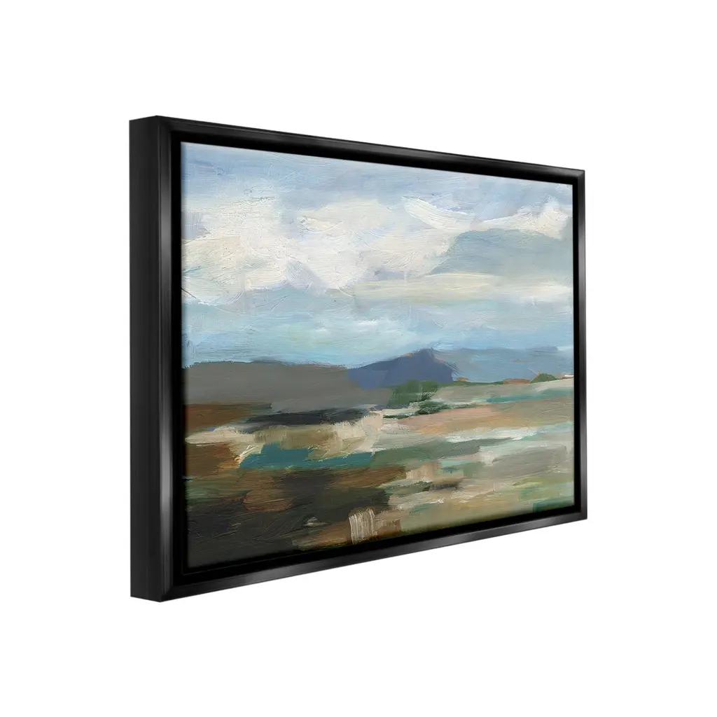 Elevate your home or office to the next level with Stupell Framed Floating Canvas Wall Art. Our premium hand-stretched canvas is mounted securely into a sturdy lightweight frame. The museum-style gap between the wrapped canvas and the box frame gives the illusion of floating artwork. Stupell Wall Art is made in the USA.Features: Dimensions: 21 x 1.7 x 17 Frame, 20 x 1.5 x 16 Canvas ArtFloating Frame Canvas Products are available in sizes 21"x17" and 31"x25". All Floating Frame Canvas Products have a 1.7" Depth.Wall Art is Ready to Hang with Hardware Free Hanging. No Installation required. For Easy Set Up Lean or Layer Artwork on Shelf or Against Wall. Artwork is Permently Fixed into the Frame.Our elevated 1.7" Thick Floating Frame is the perfect complement to our canvas style Wall Art. We use only the highest quality inks in house with industry leading printing solutions. Canvas is hand stretched over a durable wood foundation and then mounted securly into a Modern Box Frame. Made in the USA.Artwork Relates To: Painting, Nature, Water, Abstract, Landscape, Modern, Traditional, Beach, Cloud, Shore, MountainDesign by Ethan Harper