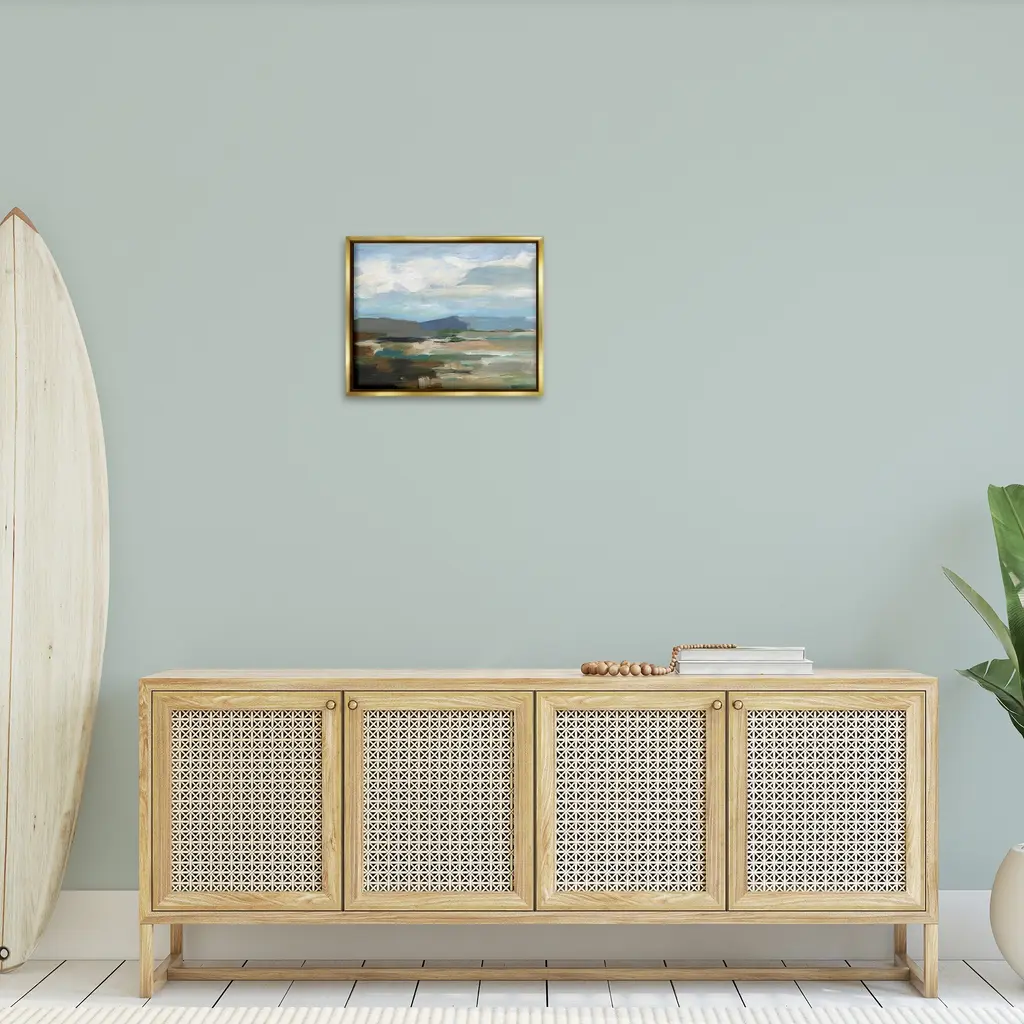 Elevate your home or office to the next level with Stupell Framed Floating Canvas Wall Art. Our premium hand-stretched canvas is mounted securely into a sturdy lightweight frame. The museum-style gap between the wrapped canvas and the box frame gives the illusion of floating artwork. Stupell Wall Art is made in the USA.Features: Dimensions: 21 x 1.7 x 17 Frame, 20 x 1.5 x 16 Canvas ArtFloating Frame Canvas Products are available in sizes 21"x17" and 31"x25". All Floating Frame Canvas Products have a 1.7" Depth.Wall Art is Ready to Hang with Hardware Free Hanging. No Installation required. For Easy Set Up Lean or Layer Artwork on Shelf or Against Wall. Artwork is Permently Fixed into the Frame.Our elevated 1.7" Thick Floating Frame is the perfect complement to our canvas style Wall Art. We use only the highest quality inks in house with industry leading printing solutions. Canvas is hand stretched over a durable wood foundation and then mounted securly into a Modern Box Frame. Made in the USA.Artwork Relates To: Painting, Nature, Water, Abstract, Landscape, Modern, Traditional, Beach, Cloud, Shore, MountainDesign by Ethan Harper