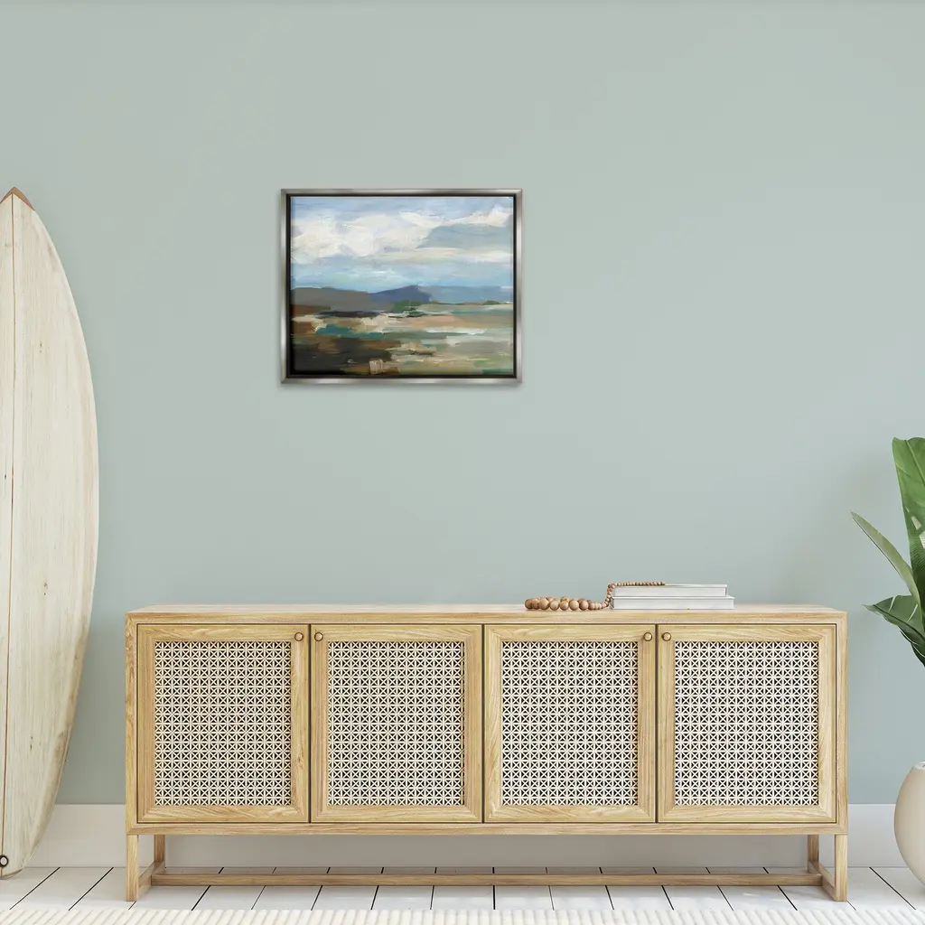 Elevate your home or office to the next level with Stupell Framed Floating Canvas Wall Art. Our premium hand-stretched canvas is mounted securely into a sturdy lightweight frame. The museum-style gap between the wrapped canvas and the box frame gives the illusion of floating artwork. Stupell Wall Art is made in the USA.Features: Dimensions: 21 x 1.7 x 17 Frame, 20 x 1.5 x 16 Canvas ArtFloating Frame Canvas Products are available in sizes 21"x17" and 31"x25". All Floating Frame Canvas Products have a 1.7" Depth.Wall Art is Ready to Hang with Hardware Free Hanging. No Installation required. For Easy Set Up Lean or Layer Artwork on Shelf or Against Wall. Artwork is Permently Fixed into the Frame.Our elevated 1.7" Thick Floating Frame is the perfect complement to our canvas style Wall Art. We use only the highest quality inks in house with industry leading printing solutions. Canvas is hand stretched over a durable wood foundation and then mounted securly into a Modern Box Frame. Made in the USA.Artwork Relates To: Painting, Nature, Water, Abstract, Landscape, Modern, Traditional, Beach, Cloud, Shore, MountainDesign by Ethan Harper