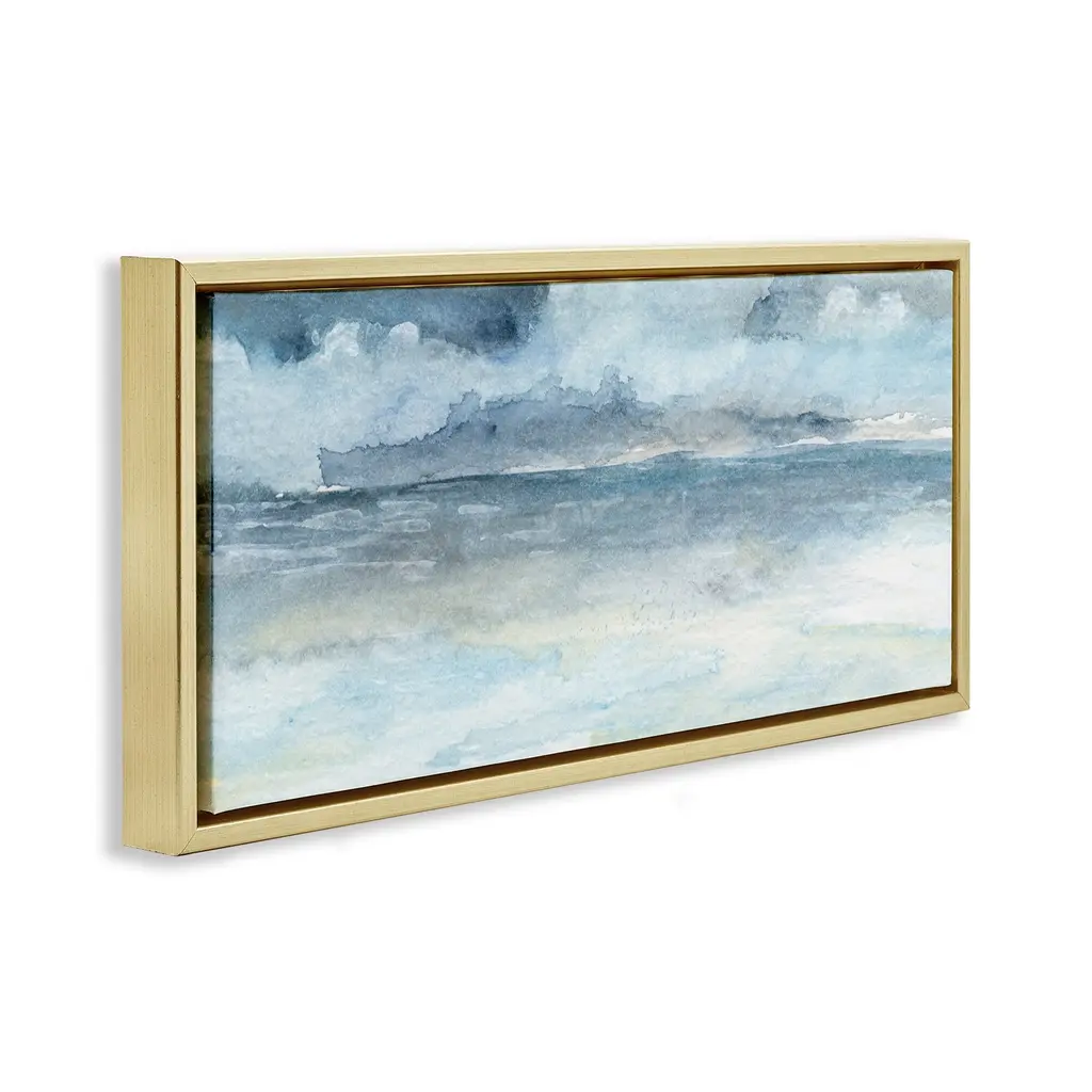 Elevate your home or office to the next level with Stupell Framed Floating Canvas Wall Art. Our premium hand-stretched canvas is mounted securely into a sturdy lightweight frame. The museum-style gap between the wrapped canvas and the box frame gives the illusion of floating artwork. Stupell Wall Art is made in the USA.Features: Dimensions: 25 x 1.7 x 11 Frame, 24 x 1.5 x 10 Canvas ArtFloating Frame Canvas Products are available in sizes 25"x11" and 31"x14". All Floating Frame Canvas Products have a 1.7" Depth.Wall Art is Ready to Hang with Hardware Free Hanging. No Installation required. For Easy Set Up Lean or Layer Artwork on Shelf or Against Wall. Artwork is Permently Fixed into the Frame.Our elevated 1.7" Thick Floating Frame is the perfect complement to our canvas style Wall Art. We use only the highest quality inks in house with industry leading printing solutions. Canvas is hand stretched over a durable wood foundation and then mounted securly into a Modern Box Frame. Made in the USA.Artwork Relates To: Painting, Nature, Sea, Water, Ocean, TideDesign by Regina Moore