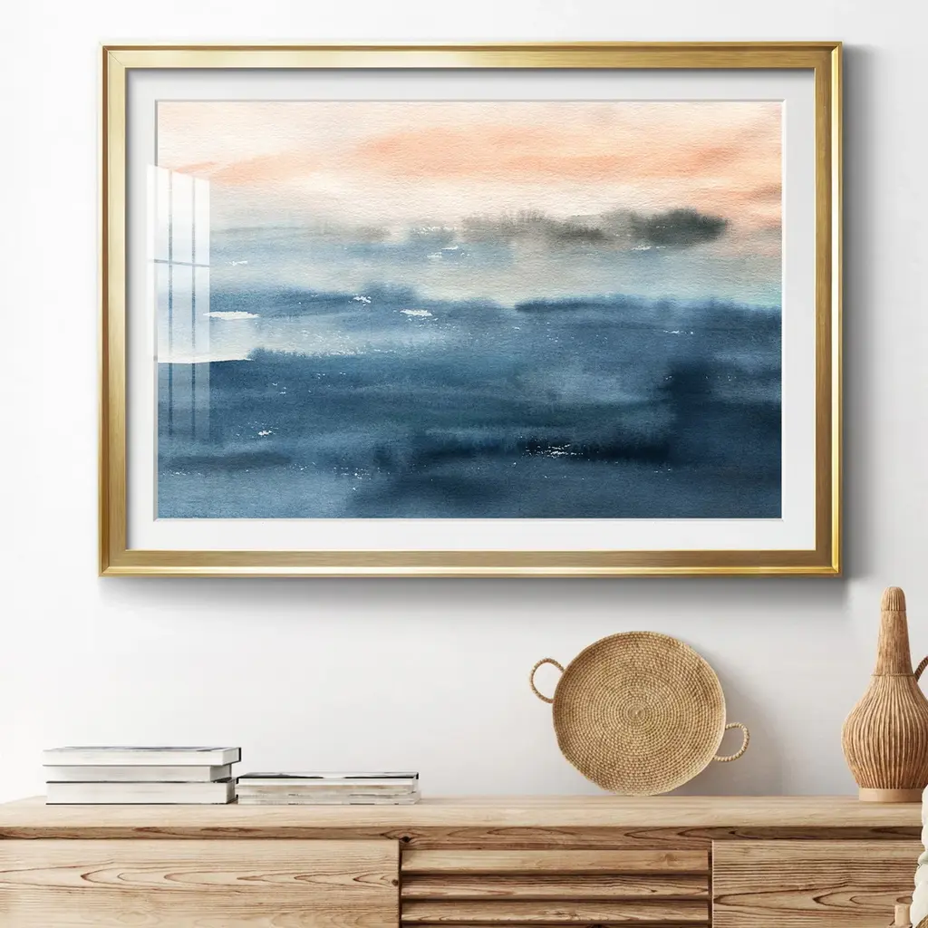Stupell Abstract Cloudy Ocean Waves Framed Floater Canvas Wall Art Design By Regina Moore - 25 X 11 - Gold