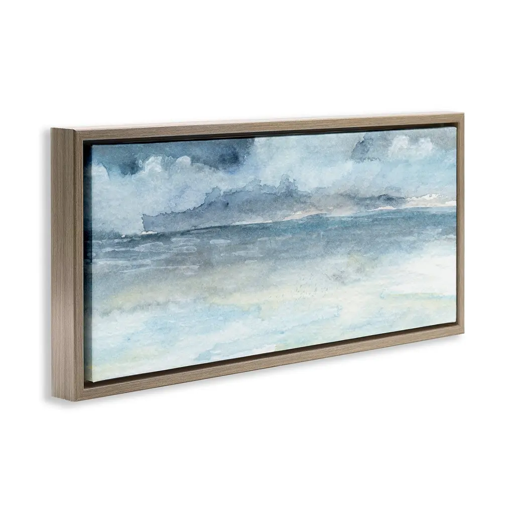 Elevate your home or office to the next level with Stupell Framed Floating Canvas Wall Art. Our premium hand-stretched canvas is mounted securely into a sturdy lightweight frame. The museum-style gap between the wrapped canvas and the box frame gives the illusion of floating artwork. Stupell Wall Art is made in the USA.Features: Dimensions: 25 x 1.7 x 11 Frame, 24 x 1.5 x 10 Canvas ArtFloating Frame Canvas Products are available in sizes 25"x11" and 31"x14". All Floating Frame Canvas Products have a 1.7" Depth.Wall Art is Ready to Hang with Hardware Free Hanging. No Installation required. For Easy Set Up Lean or Layer Artwork on Shelf or Against Wall. Artwork is Permently Fixed into the Frame.Our elevated 1.7" Thick Floating Frame is the perfect complement to our canvas style Wall Art. We use only the highest quality inks in house with industry leading printing solutions. Canvas is hand stretched over a durable wood foundation and then mounted securly into a Modern Box Frame. Made in the USA.Artwork Relates To: Painting, Nature, Sea, Water, Ocean, TideDesign by Regina Moore