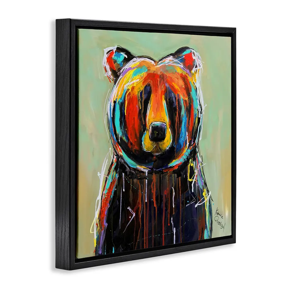 Elevate your home or office to the next level with Stupell Framed Floating Canvas Wall Art. Our premium hand-stretched canvas is mounted securely into a sturdy lightweight frame. The museum-style gap between the wrapped canvas and the box frame gives the illusion of floating artwork. Stupell Wall Art is made in the USA.Features: Dimensions: 18 x 1.7 x 18 Frame, 17 x 1.5 x 17 Canvas ArtFloating Frame Canvas Products are available in sizes 18"x18" and 25"x25". All Floating Frame Canvas Products have a 1.7" Depth.Wall Art is Ready to Hang with Hardware Free Hanging. No Installation required. For Easy Set Up Lean or Layer Artwork on Shelf or Against Wall. Artwork is Permently Fixed into the Frame.Our elevated 1.7" Thick Floating Frame is the perfect complement to our canvas style Wall Art. We use only the highest quality inks in house with industry leading printing solutions. Canvas is hand stretched over a durable wood foundation and then mounted securly into a Modern Box Frame. Made in the USA.Artwork Relates To: Abstract, Bear, Wildlife, Forest Animal, Painting, RusticDesign by Karrie Evenson