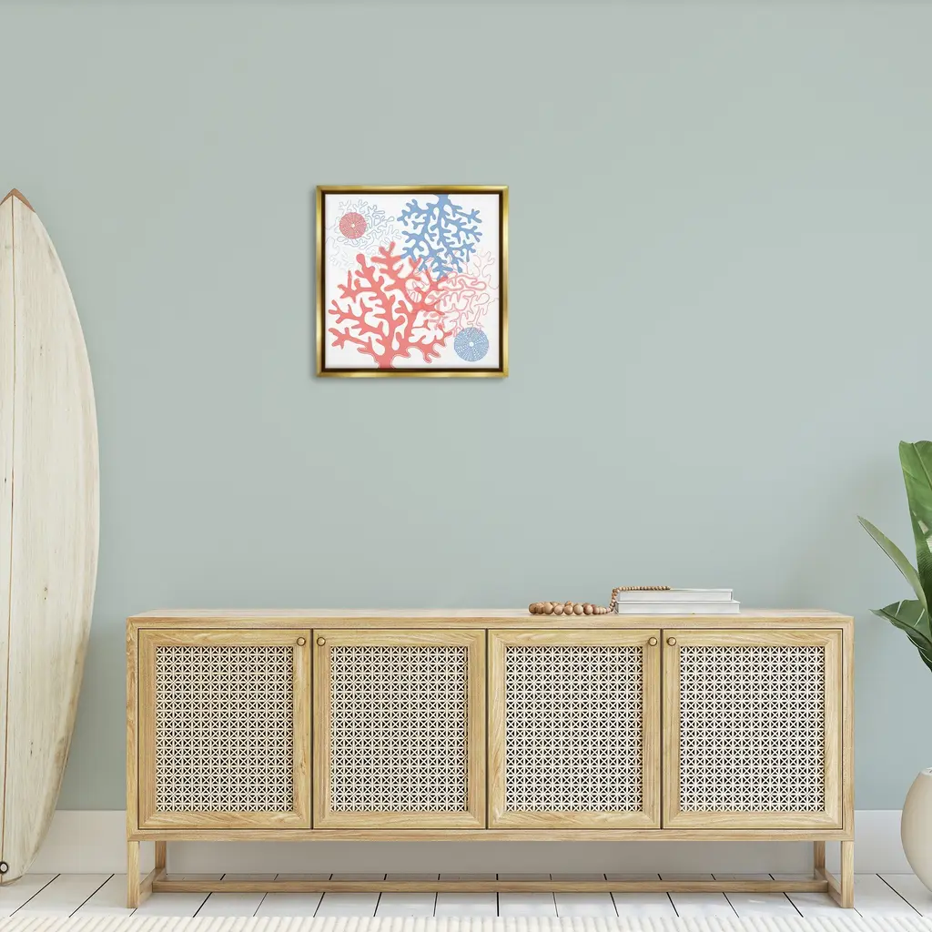 Elevate your home or office to the next level with Stupell Framed Floating Canvas Wall Art. Our premium hand-stretched canvas is mounted securely into a sturdy lightweight frame. The museum-style gap between the wrapped canvas and the box frame gives the illusion of floating artwork. Stupell Wall Art is made in the USA.Features: Dimensions: 18 x 1.7 x 18 Frame, 17 x 1.5 x 17 Canvas ArtFloating Frame Canvas Products are available in sizes 18"x18" and 25"x25". All Floating Frame Canvas Products have a 1.7" Depth.Wall Art is Ready to Hang with Hardware Free Hanging. No Installation required. For Easy Set Up Lean or Layer Artwork on Shelf or Against Wall. Artwork is Permently Fixed into the Frame.Our elevated 1.7" Thick Floating Frame is the perfect complement to our canvas style Wall Art. We use only the highest quality inks in house with industry leading printing solutions. Canvas is hand stretched over a durable wood foundation and then mounted securly into a Modern Box Frame. Made in the USA.Artwork Relates To: Animal, Reef, Sea, Sea Life, Water, Coral Reef, Beach, Ocean, Pattern, Abstract, UrchinDesign by Martina Pavlova