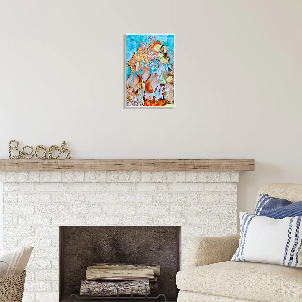 Our wall plaques start as high-quality lithograph prints mounted on durable 0.5-inch thick MDF wood. Each piece is hand finished and comes with a fresh layer of white foil on the sides to give it a crisp, clean look. Plaques arrive ready to hang without installation and come with removable plastic corners to keep them from damage in transit. Stupell Industries Wall Art is made in the USA.Features: Dimensions: 10 x 0.5 x 15 InchesWall Plaque Sizes Include Standard: 10 x 0.5 x 15 Oversized: 13 x 0.5 x 19Wall Art is Ready to Hang with Hardware Free Hanging. No installation required. For Easy Set Up Lean or Layer Artwork on Shelf or Against Wall.All of our wall plaques start off as high quality lithograph prints that are then mounted on durable 0.5 inch thick MDF wood. Each piece is hand finished and comes with a fresh layer of foil on the sides to give it a crisp clean look. Made In USA.Artwork Relates To: Pattern, Animal, Reef, Sea, Sea Life, Water, Modern, AbstractDesign by Amy Tieman