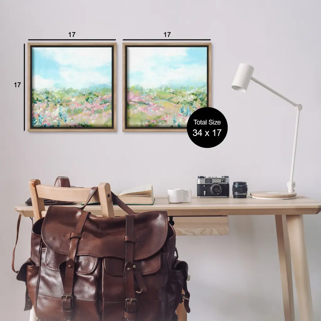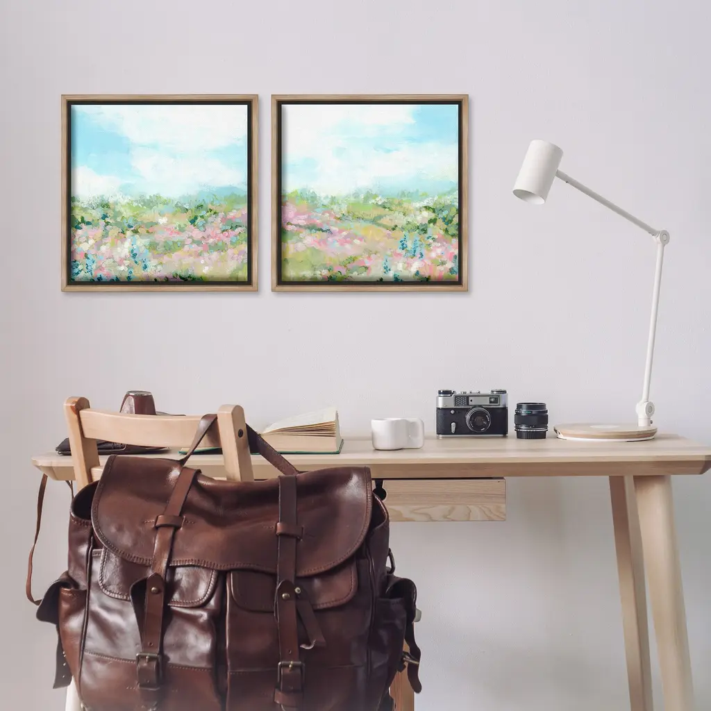 Elevate your home or office to the next level with Stupell Framed Floating Canvas Wall Art. Our premium hand-stretched canvas is mounted securely into a sturdy lightweight frame. The museum-style gap between the wrapped canvas and the box frame gives the illusion of floating artwork. Stupell Wall Art is made in the USA.Features: Dimensions: 2 Piece Set, Each Frame is 18 x 1.7 x 18Two Piece Floating Frame Canvas Products are available as 18"x18" or 25"x25" Panels. All Floating Frame Canvas Products have a 1.7" Depth.Wall Art is Ready to Hang with Hardware Free Hanging. No Installation required. For Easy Set Up Lean or Layer Artwork on Shelf or Against Wall. Artwork is Permently Fixed into the Frame.Our elevated 1.7" Thick Floating Frame is the perfect complement to our canvas style Wall Art. We use only the highest quality inks in house with industry leading printing solutions. Canvas is hand stretched over a durable wood foundation and then mounted securly into a Modern Box Frame. Made in the USA.Artwork Relates To: Painting, Nature, Flower, Plant, Landscape, Meadow, Abstract, Modern, Field, CottageDesign by June Erica Vess