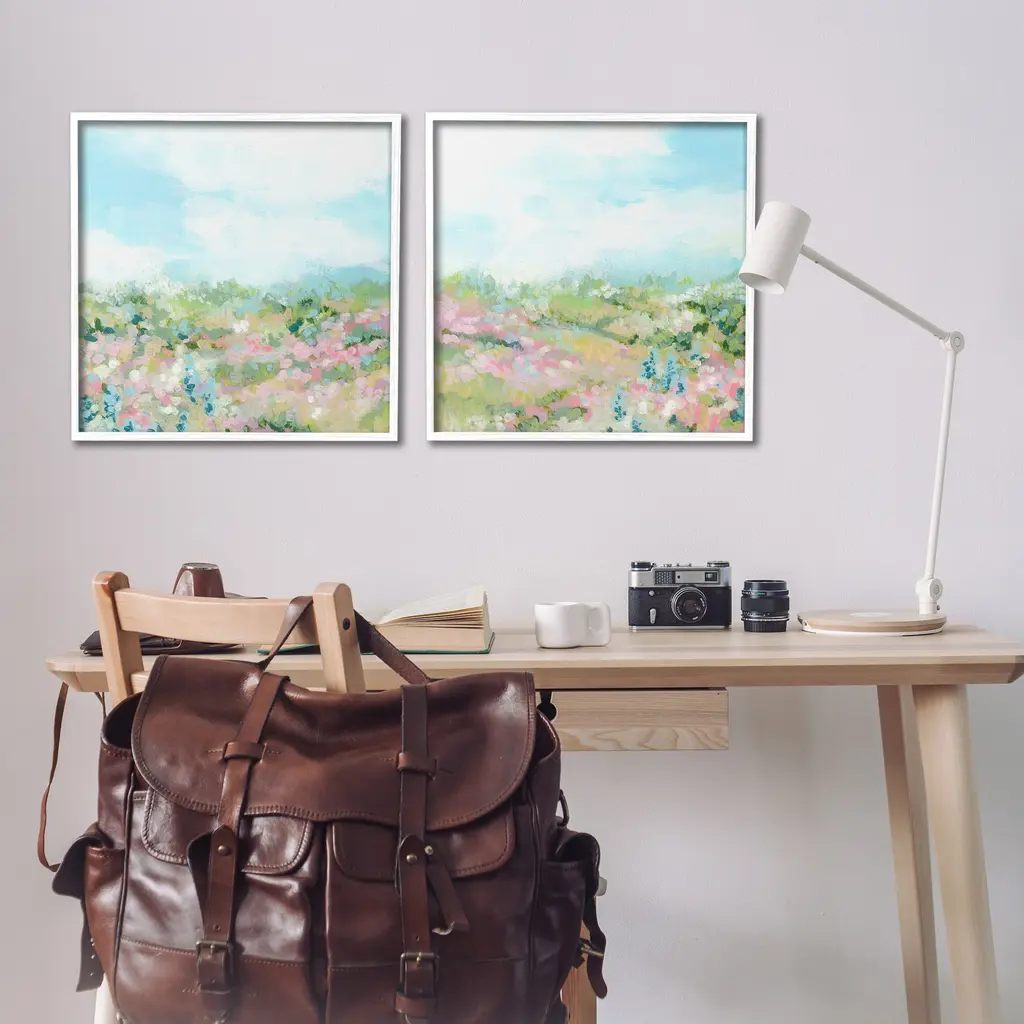 Fill any space in your home or office with our Framed Wall Art Sets. Our framed artwork is securely mounted into a 1.5-inch thick wood grain frame and ready to hang. Frames are available in three alluring styles: black, gray farmhouse and white. Stupell Wall Art is made in the USA.Features: Dimensions: 2 Piece Set, Each Panel is 12 x 1.5 x 12 FramedTwo Piece Framed Giclee Sets are available as 12"x12", 17"x17" or 24"x24" Panels. All Framed giclee Products have a 1.5" Depth.Wall Art is Ready to Hang with Hardware Free Hanging. No installation required. For Easy Set Up Lean or Layer Artwork on Shelf or Against Wall.Curated Wall Art Sets make it easy for you complete the theme for any room. Our giclée prints are carefully mounted on a durable MDF backing, and then perfectly finished in a 1.5 inch thick woodgrain frame. Mounted frame colors include black, gray farmhouse and white. Made In USA.Artwork Relates To: Painting, Nature, Flower, Plant, Landscape, Meadow, Abstract, Modern, Field, CottageDesign by June Erica Vess