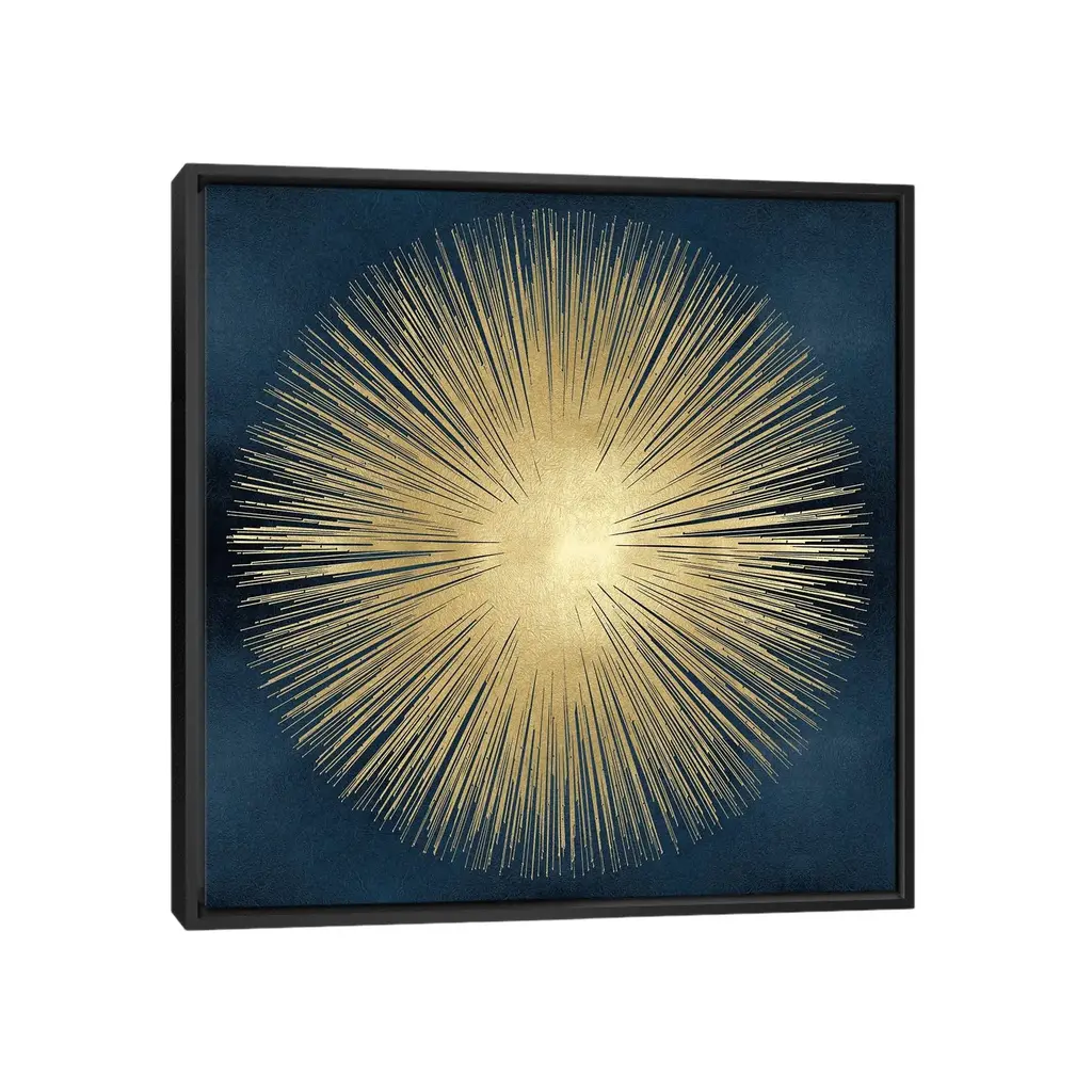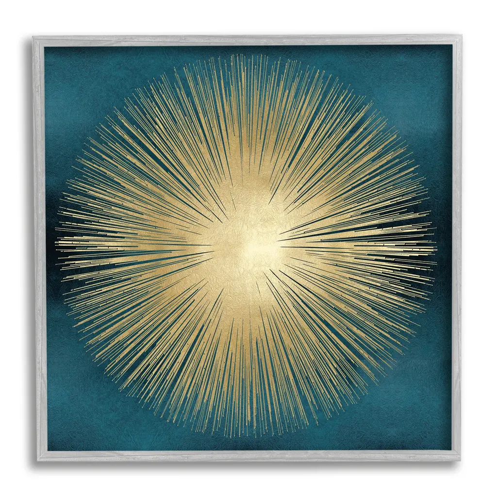 Stupell Abstract Deco Sunburst Shape Over Dark Blue Canvas Wall Art - Yellow - 30 X 30