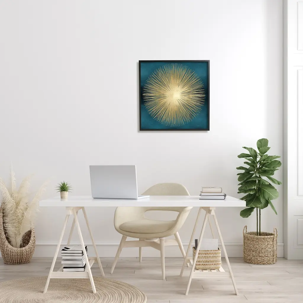 Stupell Abstract Deco Sunburst Shape Over Dark Blue Framed Wall Art - 24 X 24 - Black
