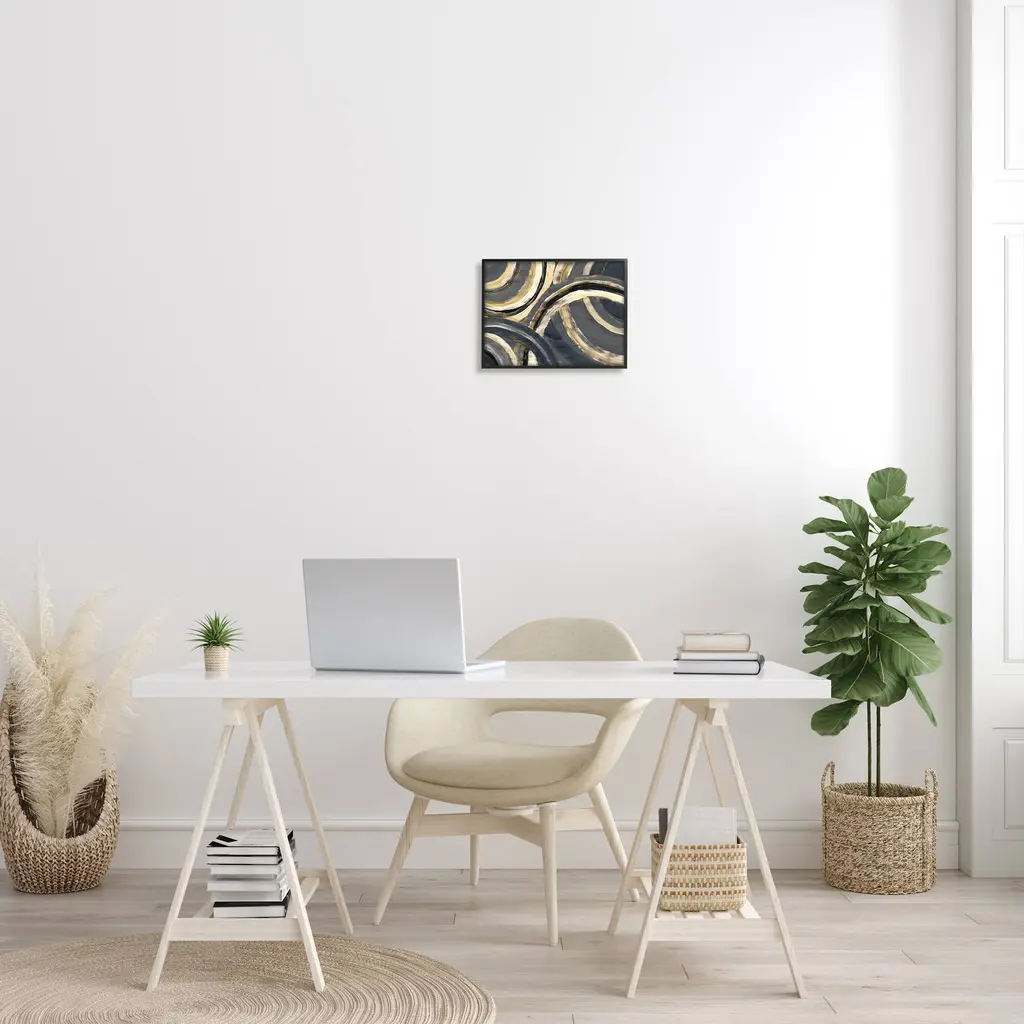 Stupell Abstract Developing Rings Grey Gold Encasing Arches Framed Wall Art - 11 X 14 - Black