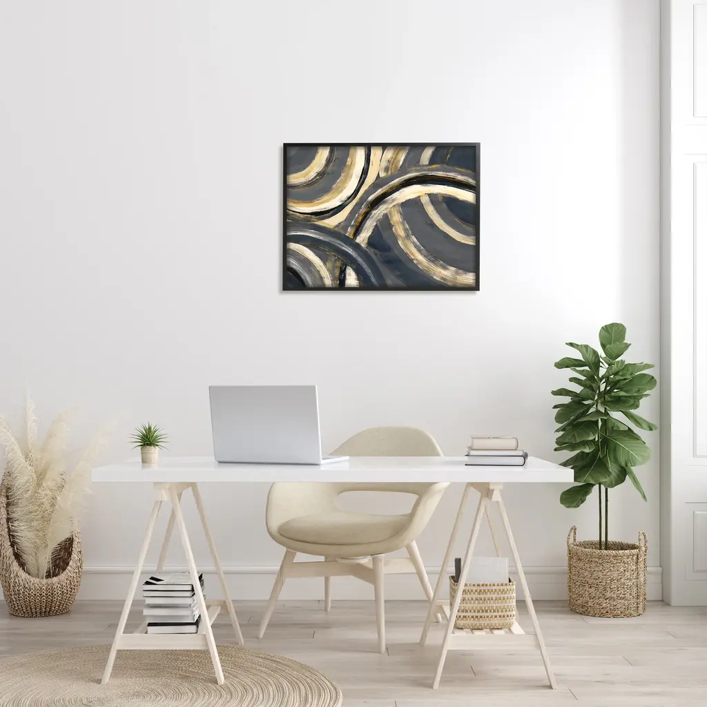 Stupell Abstract Developing Rings Grey Gold Encasing Arches Framed Wall Art - 24 X 30 - Black