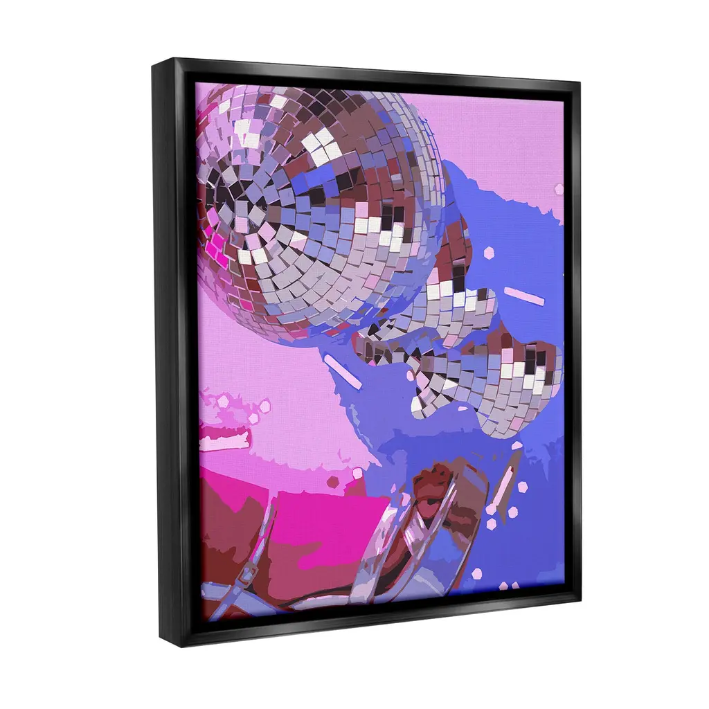 Elevate your home or office to the next level with Stupell Framed Floating Canvas Wall Art. Our premium hand-stretched canvas is mounted securely into a sturdy lightweight frame. The museum-style gap between the wrapped canvas and the box frame gives the illusion of floating artwork. Stupell Wall Art is made in the USA.Features: Dimensions: 17 x 1.7 x 21 Frame, 16 x 1.5 x 20 Canvas ArtFloating Frame Canvas Products are available in sizes 17"x21" and 25"x31". All Floating Frame Canvas Products have a 1.7" Depth.Wall Art is Ready to Hang with Hardware Free Hanging. No Installation required. For Easy Set Up Lean or Layer Artwork on Shelf or Against Wall. Artwork is Permently Fixed into the Frame.Our elevated 1.7" Thick Floating Frame is the perfect complement to our canvas style Wall Art. We use only the highest quality inks in house with industry leading printing solutions. Canvas is hand stretched over a durable wood foundation and then mounted securly into a Modern Box Frame. Made in the USA.Artwork Relates To: Dance, Music, Disco, Pattern, Abstract, Shape, Modern, Glam, WomanDesign by Lil' Rue