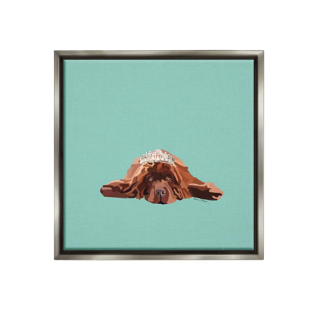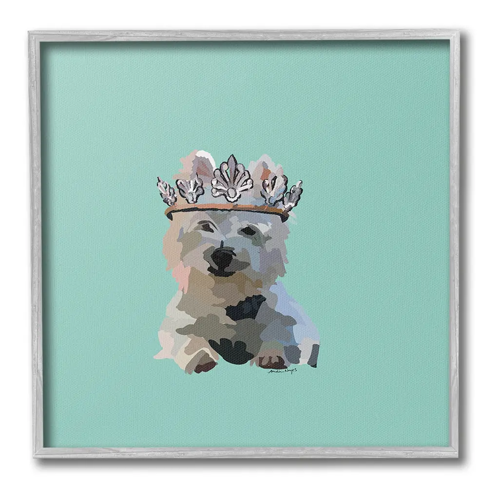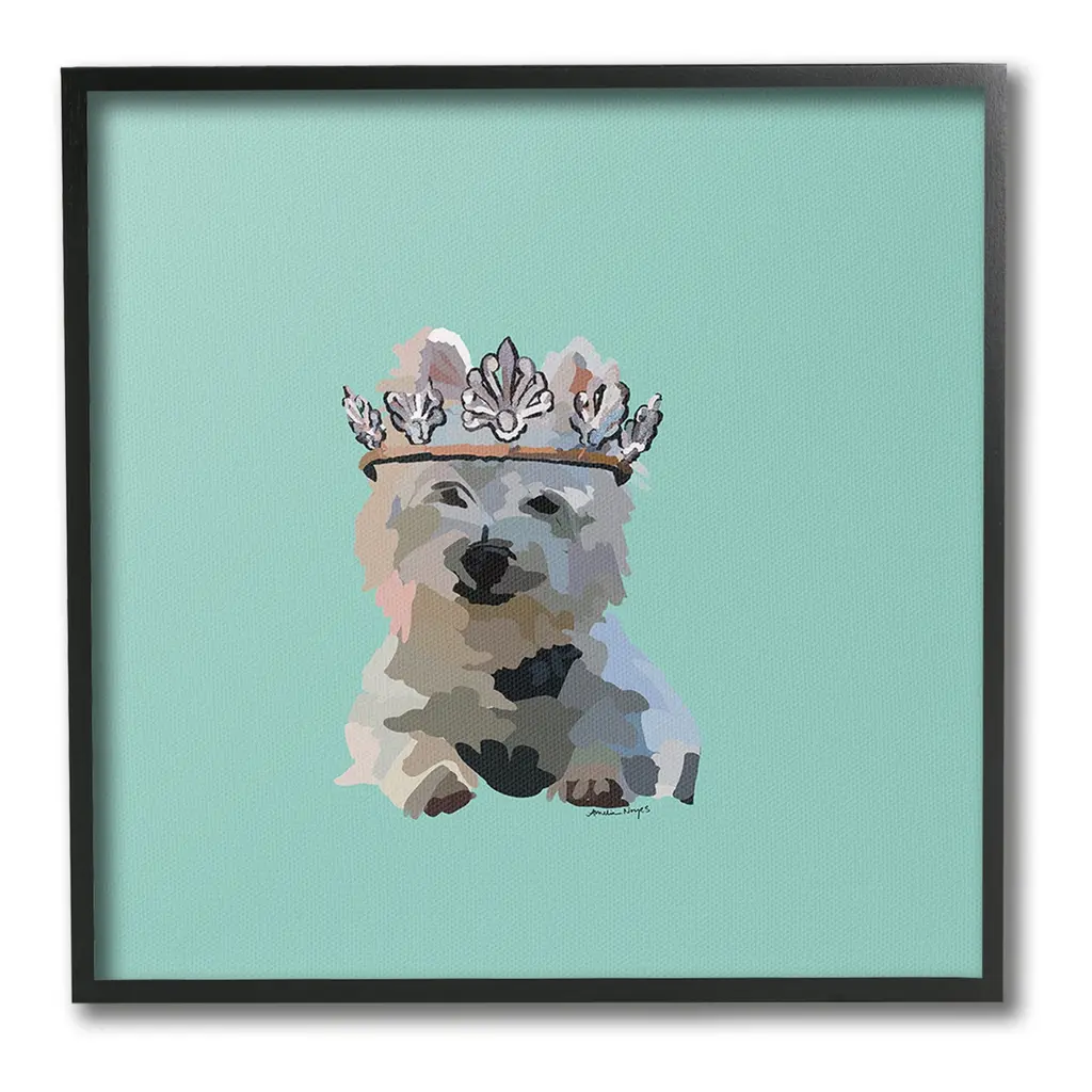 Add dimension to any room with our textured Framed Giclee Artwork. Our framed artwork is securely mounted into a 1.5-inch thick wood grain frame and ready to hang. Frames are available in three alluring styles: black, gray farmhouse and white. In addition, you should check out our oversized options if you want a statement piece. Stupell Wall Art is made in the USA.Features: Dimensions: 12 x 1.5 x 12 FramedFramed Giclee Product Sizes Include 12"x12", 17"x17", and 24"x24". Framed Giclee Products have a 1.5" Depth. Wall Art is Ready to Hang with Hardware Free Hanging. No installation required. For Easy Set Up Lean or Layer Artwork on Shelf or Against Wall.Our giclée prints are carefully mounted on a durable MDF backing, and then perfectly finished in a 1.5 inch thick woodgrain frame. Mounted frame colors include black, gray farmhouse and white. Made In USA.Artwork Relates To: Animal, Canine, Dog, Mammal, Pet, Puppy, Tiara, Crown, Princess, Cocker SpanielDesign by Amelia Noyes