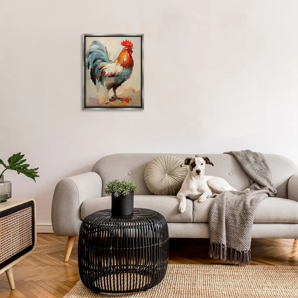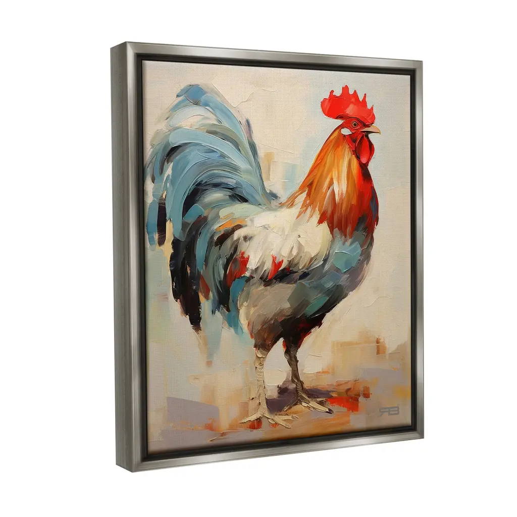 Elevate your home or office to the next level with Stupell Framed Floating Canvas Wall Art. Our premium hand-stretched canvas is mounted securely into a sturdy lightweight frame. The museum-style gap between the wrapped canvas and the box frame gives the illusion of floating artwork. Stupell Wall Art is made in the USA.Features: Dimensions: 17 x 1.7 x 21 Frame, 16 x 1.5 x 20 Canvas ArtFloating Frame Canvas Products are available in sizes 17"x21" and 25"x31". All Floating Frame Canvas Products have a 1.7" Depth.Wall Art is Ready to Hang with Hardware Free Hanging. No Installation required. For Easy Set Up Lean or Layer Artwork on Shelf or Against Wall. Artwork is Permently Fixed into the Frame.Our elevated 1.7" Thick Floating Frame is the perfect complement to our canvas style Wall Art. We use only the highest quality inks in house with industry leading printing solutions. Canvas is hand stretched over a durable wood foundation and then mounted securly into a Modern Box Frame. Made in the USA.Artwork Relates To: Animal, Bird, Chicken, Rooster, Country, Hen, Farmhouse, Abstract, ModernDesign by RB