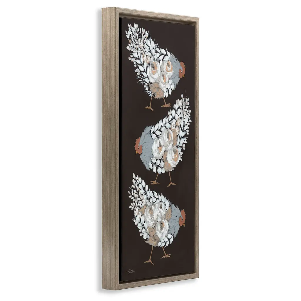 Elevate your home or office to the next level with Stupell Framed Floating Canvas Wall Art. Our premium hand-stretched canvas is mounted securely into a sturdy lightweight frame. The museum-style gap between the wrapped canvas and the box frame gives the illusion of floating artwork. Stupell Wall Art is made in the USA.Features: Dimensions: 11 x 1.7 x 25 Frame, 10 x 1.5 x 24 Canvas ArtFloating Frame Canvas Products are available in sizes 11"x25" and 14"x31". All Floating Frame Canvas Products have a 1.7" Depth.Wall Art is Ready to Hang with Hardware Free Hanging. No Installation required. For Easy Set Up Lean or Layer Artwork on Shelf or Against Wall. Artwork is Permently Fixed into the Frame.Our elevated 1.7" Thick Floating Frame is the perfect complement to our canvas style Wall Art. We use only the highest quality inks in house with industry leading printing solutions. Canvas is hand stretched over a durable wood foundation and then mounted securly into a Modern Box Frame. Made in the USA.Artwork Relates To: Floral, Pattern, Flower, Blossom, Bird, Chicken, Hen, CountryDesign by Michele Norman