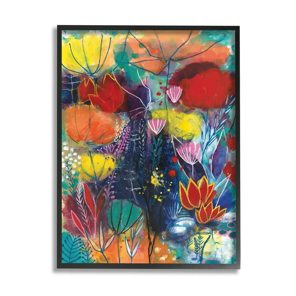 Stupell Abstract Flower Field Orange Blue Yellow Framed Wall Art - Multi-Color - 11 X 14 - Black