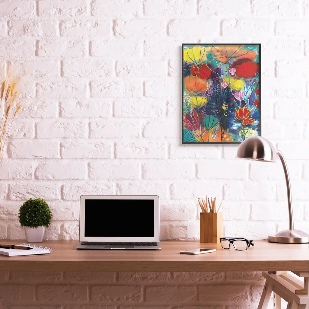 Stupell Abstract Flower Field Orange Blue Yellow Framed Wall Art - Multi-Color - 16 X 20 - Grey