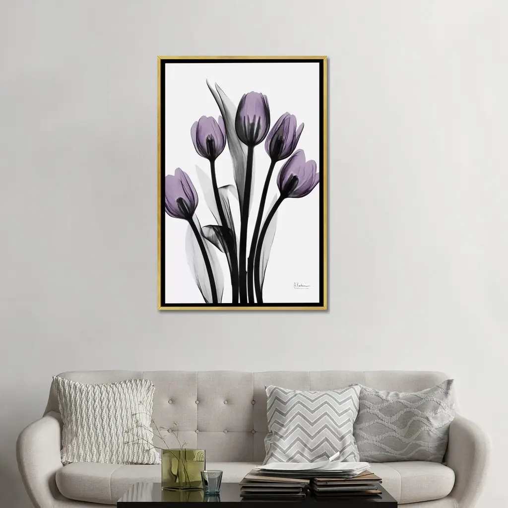 Stupell Abstract Flower Silhouette Monochrome Tulips Design Framed Wall Art - White - 16 X 20 - Grey