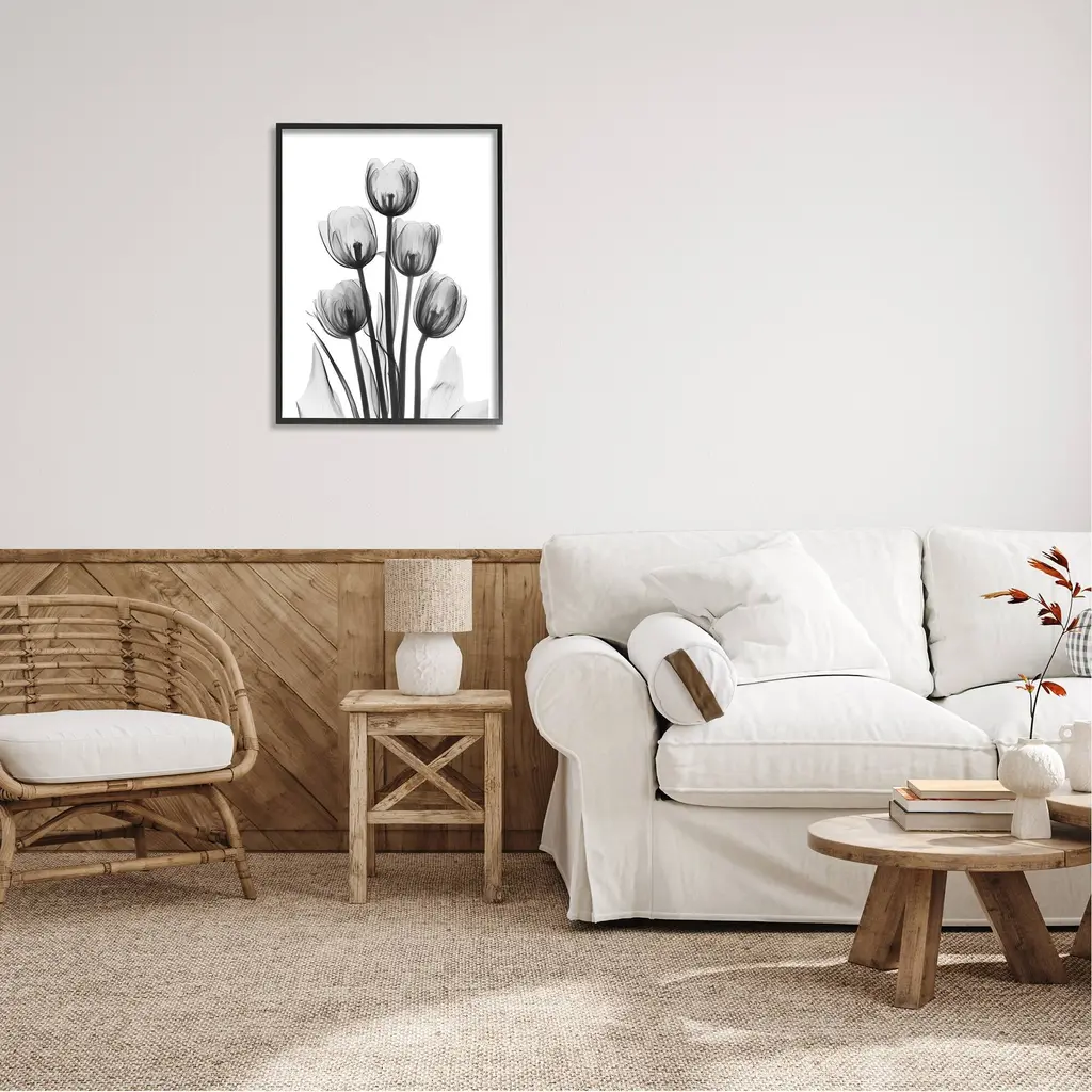Stupell Abstract Flower Silhouette Monochrome Tulips Design Framed Wall Art - White - 24 X 30 - Black