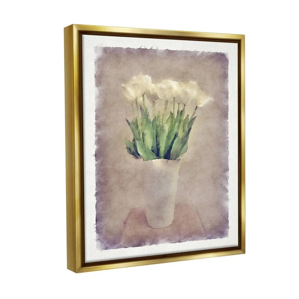 Elevate your home or office to the next level with Stupell Framed Floating Canvas Wall Art. Our premium hand-stretched canvas is mounted securely into a sturdy lightweight frame. The museum-style gap between the wrapped canvas and the box frame gives the illusion of floating artwork. Stupell Wall Art is made in the USA.Features: Dimensions: 17 x 1.7 x 21 Frame, 16 x 1.5 x 20 Canvas ArtFloating Frame Canvas Products are available in sizes 17"x21" and 25"x31". All Floating Frame Canvas Products have a 1.7" Depth.Wall Art is Ready to Hang with Hardware Free Hanging. No Installation required. For Easy Set Up Lean or Layer Artwork on Shelf or Against Wall. Artwork is Permently Fixed into the Frame.Our elevated 1.7" Thick Floating Frame is the perfect complement to our canvas style Wall Art. We use only the highest quality inks in house with industry leading printing solutions. Canvas is hand stretched over a durable wood foundation and then mounted securly into a Modern Box Frame. Made in the USA.Artwork Relates To: Plant, Potted Plant, Flower, Bouquet, Floral, Planter, Garden, Spring, Abstract, TulipDesign by Noah Bay