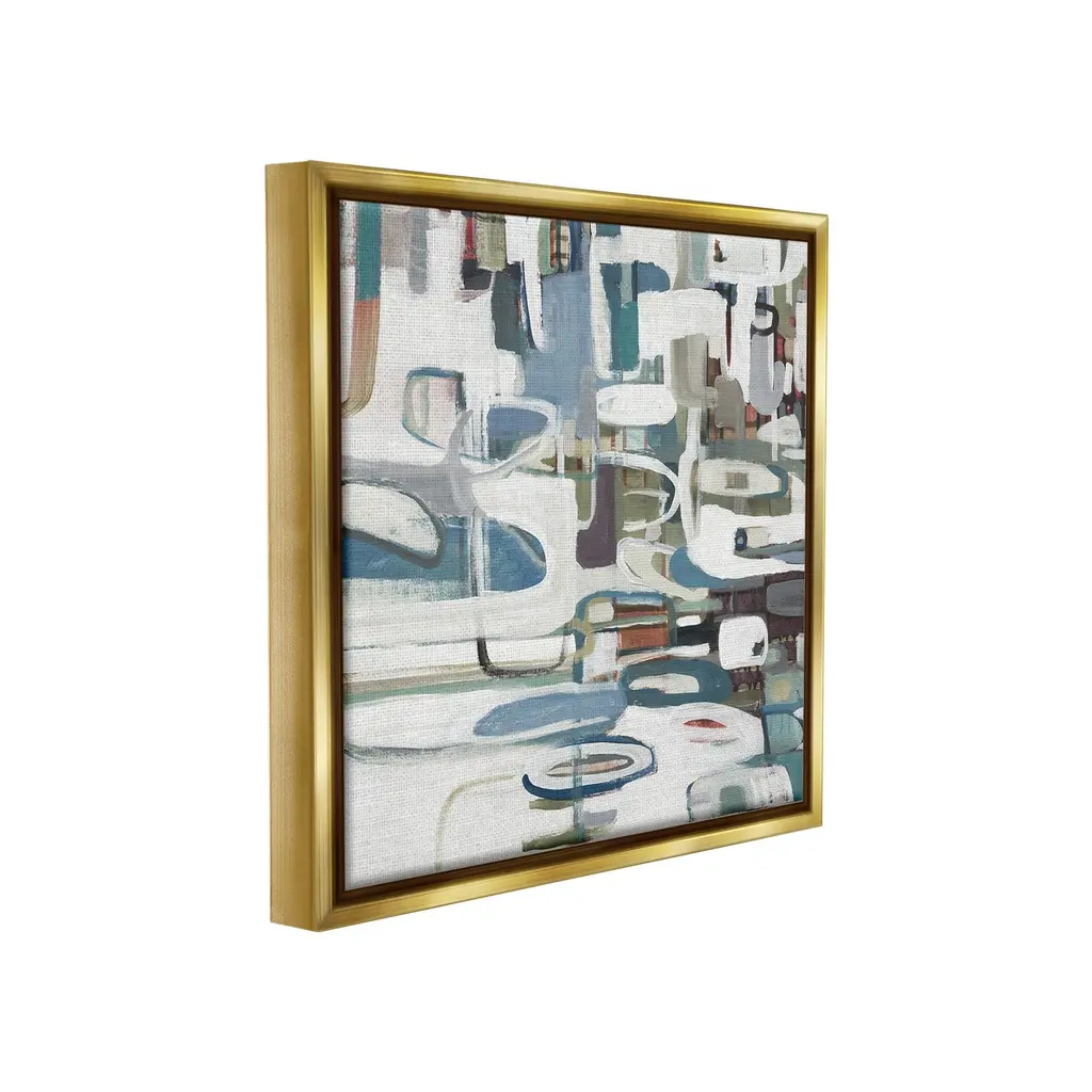 Elevate your home or office to the next level with Stupell Framed Floating Canvas Wall Art. Our premium hand-stretched canvas is mounted securely into a sturdy lightweight frame. The museum-style gap between the wrapped canvas and the box frame gives the illusion of floating artwork. Stupell Wall Art is made in the USA.Features: Dimensions: 18 x 1.7 x 18 Frame, 17 x 1.5 x 17 Canvas ArtFloating Frame Canvas Products are available in sizes 18"x18" and 25"x25". All Floating Frame Canvas Products have a 1.7" Depth.Wall Art is Ready to Hang with Hardware Free Hanging. No Installation required. For Easy Set Up Lean or Layer Artwork on Shelf or Against Wall. Artwork is Permently Fixed into the Frame.Our elevated 1.7" Thick Floating Frame is the perfect complement to our canvas style Wall Art. We use only the highest quality inks in house with industry leading printing solutions. Canvas is hand stretched over a durable wood foundation and then mounted securly into a Modern Box Frame. Made in the USA.Artwork Relates To: Modern, Abstract, Pattern, Shapes, GeometricDesign by Lisa Ridgers