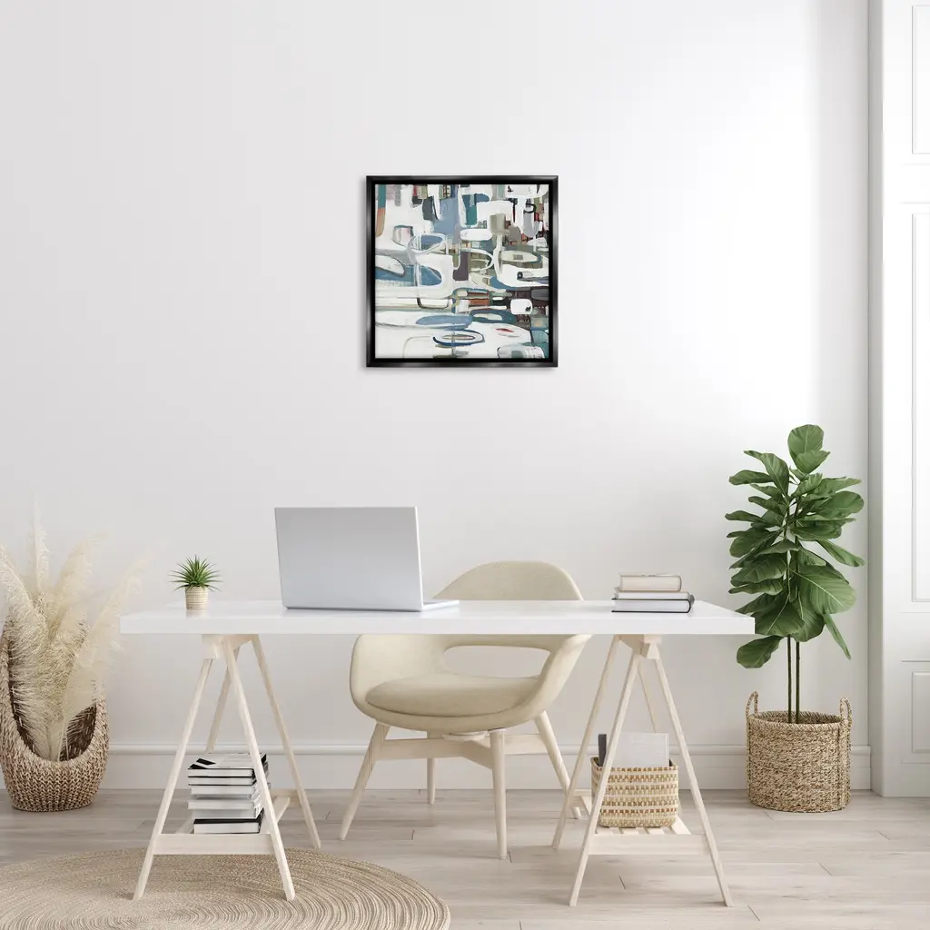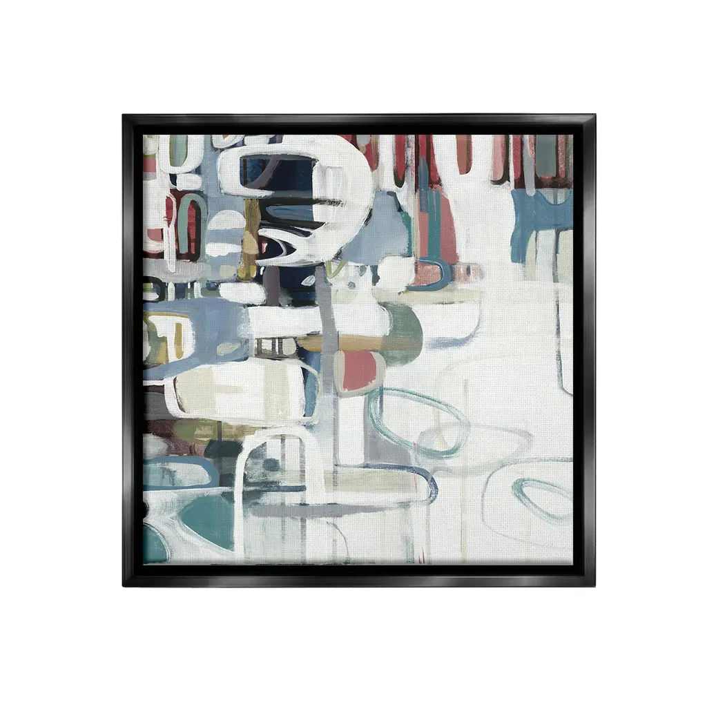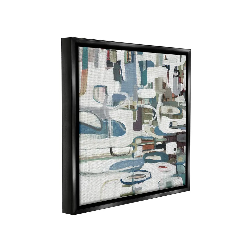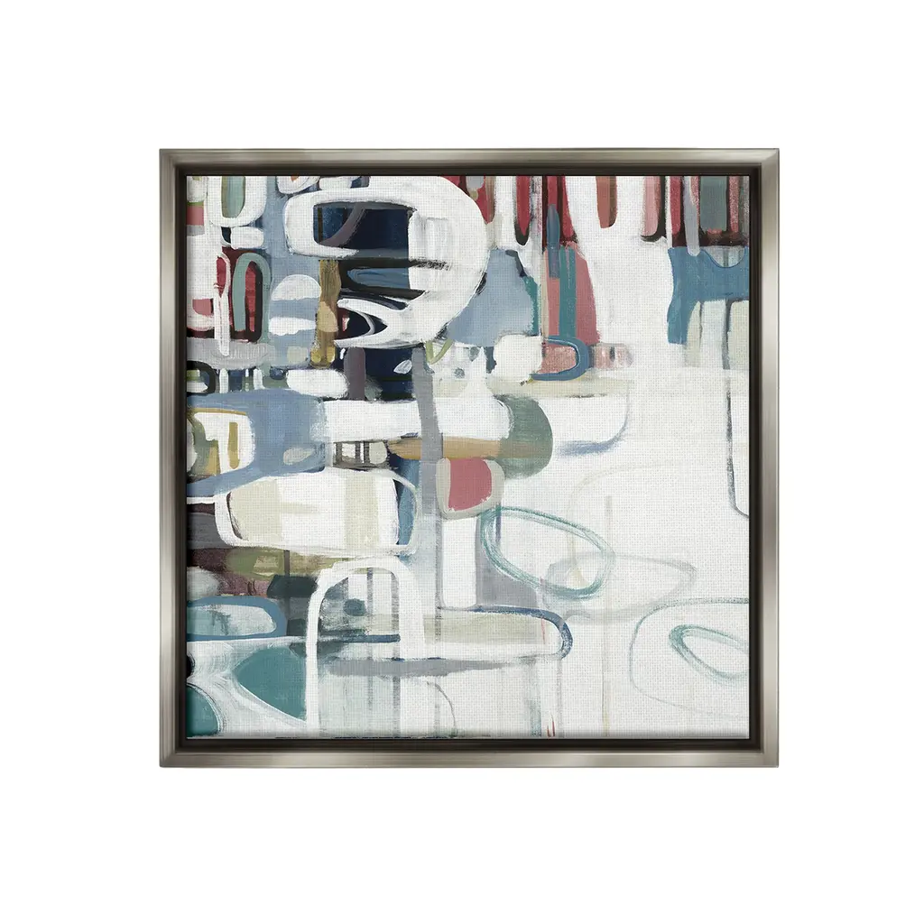 Elevate your home or office to the next level with Stupell Framed Floating Canvas Wall Art. Our premium hand-stretched canvas is mounted securely into a sturdy lightweight frame. The museum-style gap between the wrapped canvas and the box frame gives the illusion of floating artwork. Stupell Wall Art is made in the USA.Features: Dimensions: 18 x 1.7 x 18 Frame, 17 x 1.5 x 17 Canvas ArtFloating Frame Canvas Products are available in sizes 18"x18" and 25"x25". All Floating Frame Canvas Products have a 1.7" Depth.Wall Art is Ready to Hang with Hardware Free Hanging. No Installation required. For Easy Set Up Lean or Layer Artwork on Shelf or Against Wall. Artwork is Permently Fixed into the Frame.Our elevated 1.7" Thick Floating Frame is the perfect complement to our canvas style Wall Art. We use only the highest quality inks in house with industry leading printing solutions. Canvas is hand stretched over a durable wood foundation and then mounted securly into a Modern Box Frame. Made in the USA.Artwork Relates To: Modern, Abstract, Pattern, Shapes, GeometricDesign by Lisa Ridgers
