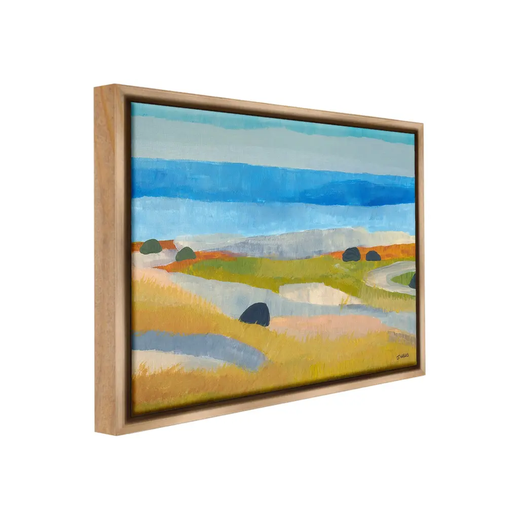 Elevate your home or office to the next level with Stupell Framed Floating Canvas Wall Art. Our premium hand-stretched canvas is mounted securely into a sturdy lightweight frame. The museum-style gap between the wrapped canvas and the box frame gives the illusion of floating artwork. Stupell Wall Art is made in the USA.Features: Dimensions: 21 x 1.7 x 17 Frame, 20 x 1.5 x 16 Canvas ArtFloating Frame Canvas Products are available in sizes 21"x17" and 31"x25". All Floating Frame Canvas Products have a 1.7" Depth.Wall Art is Ready to Hang with Hardware Free Hanging. No Installation required. For Easy Set Up Lean or Layer Artwork on Shelf or Against Wall. Artwork is Permently Fixed into the Frame.Our elevated 1.7" Thick Floating Frame is the perfect complement to our canvas style Wall Art. We use only the highest quality inks in house with industry leading printing solutions. Canvas is hand stretched over a durable wood foundation and then mounted securly into a Modern Box Frame. Made in the USA.Artwork Relates To: Nature, Sea, Water, Painting, Promontory, Shoreline, Scenery, Coast, Landscape, Modern, Beach, ShoreDesign by Jan Weiss