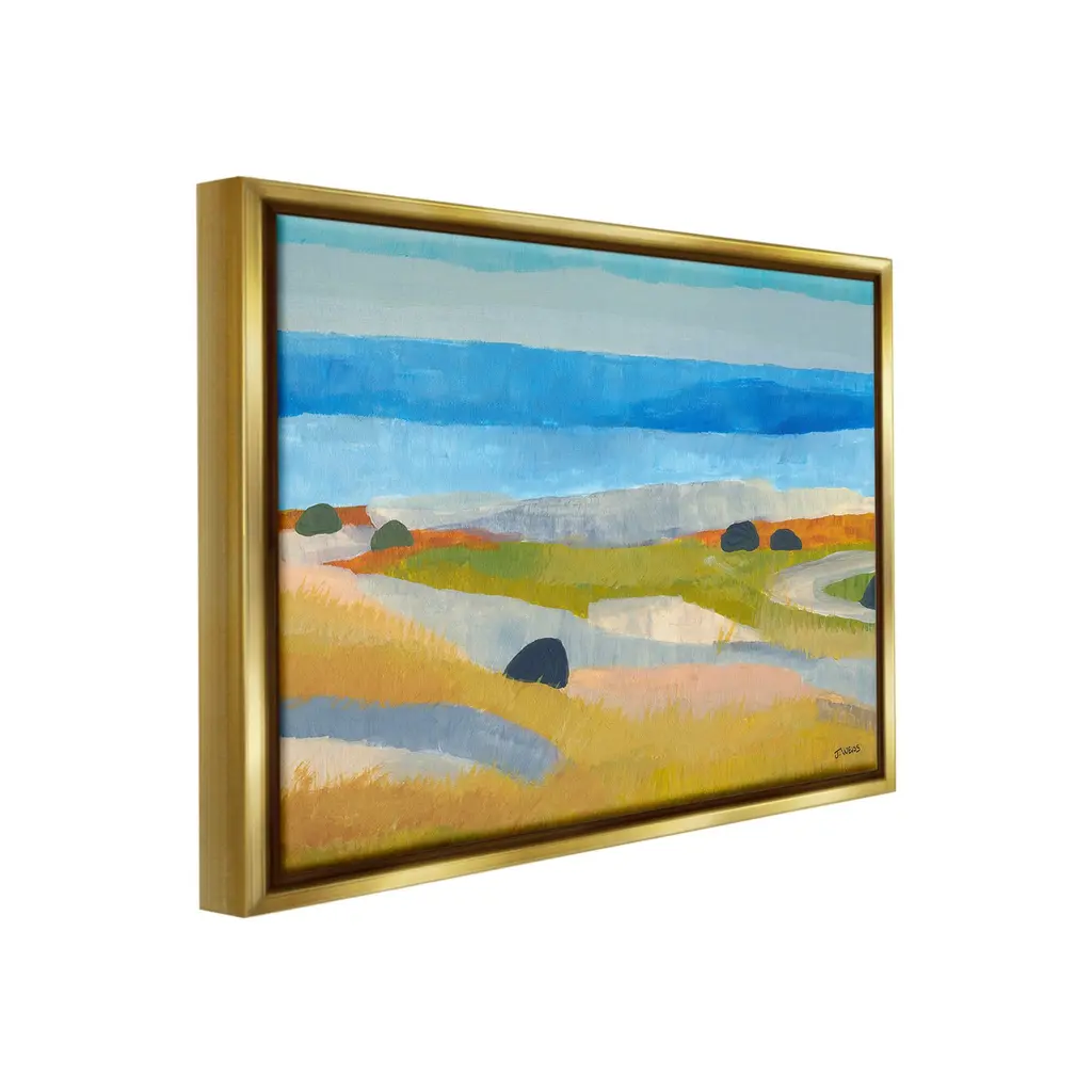 Elevate your home or office to the next level with Stupell Framed Floating Canvas Wall Art. Our premium hand-stretched canvas is mounted securely into a sturdy lightweight frame. The museum-style gap between the wrapped canvas and the box frame gives the illusion of floating artwork. Stupell Wall Art is made in the USA.Features: Dimensions: 21 x 1.7 x 17 Frame, 20 x 1.5 x 16 Canvas ArtFloating Frame Canvas Products are available in sizes 21"x17" and 31"x25". All Floating Frame Canvas Products have a 1.7" Depth.Wall Art is Ready to Hang with Hardware Free Hanging. No Installation required. For Easy Set Up Lean or Layer Artwork on Shelf or Against Wall. Artwork is Permently Fixed into the Frame.Our elevated 1.7" Thick Floating Frame is the perfect complement to our canvas style Wall Art. We use only the highest quality inks in house with industry leading printing solutions. Canvas is hand stretched over a durable wood foundation and then mounted securly into a Modern Box Frame. Made in the USA.Artwork Relates To: Nature, Sea, Water, Painting, Promontory, Shoreline, Scenery, Coast, Landscape, Modern, Beach, ShoreDesign by Jan Weiss