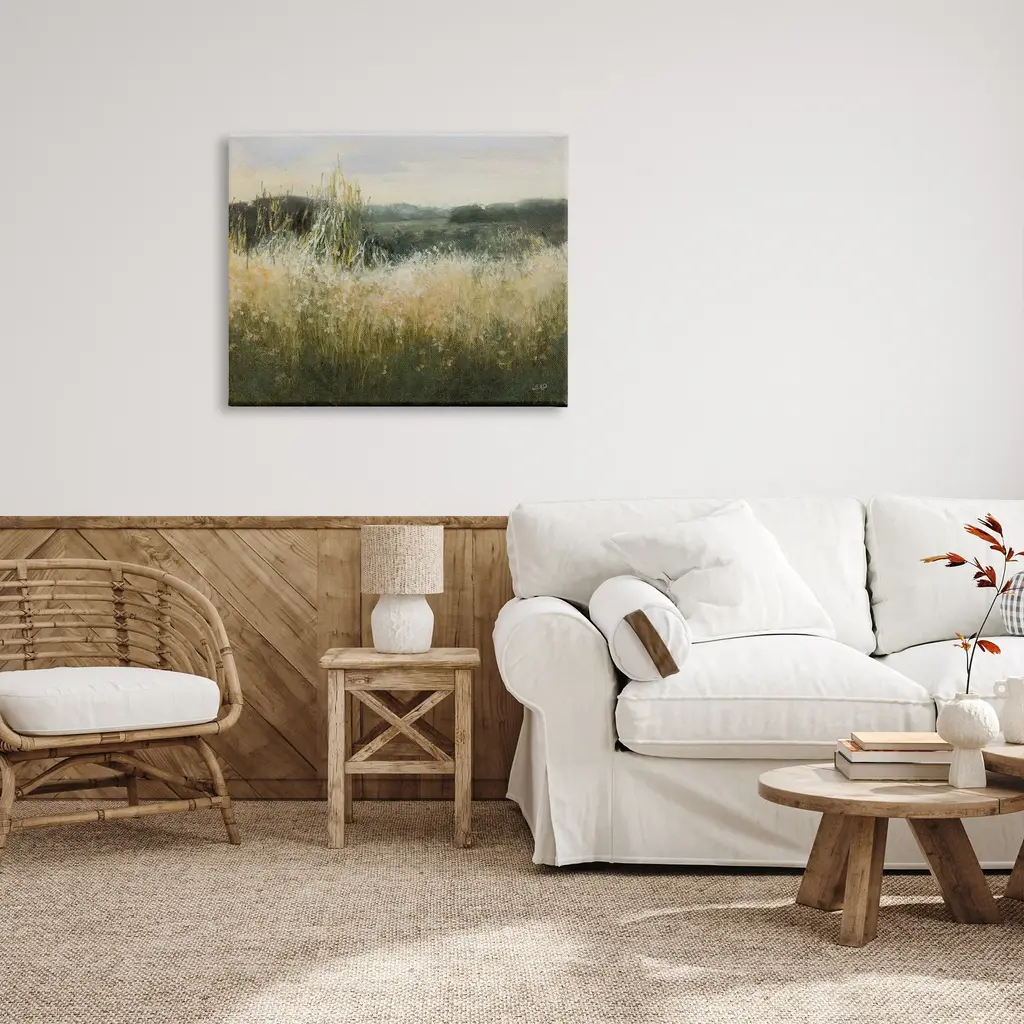 We create our stretched canvas to the highest standards. Using only the highest quality inks and canvas on Mimaki printers, we hand-cut and stretch each piece over a 1.5-inch thick wooden frame for hanging. As a result, the art comes ready to hang on the sturdy ledge with no installation required. Stupell Wall Art is made in the USA.Features: Dimensions: 20 x 1.5 x 16 InchesStretched Canvas Sizes Include Standard: 20 x 1.5 x 16 Large: 30 x 1.5 x 20 X-Large: 40 x 1.5 x 30 Oversized: 48 x 1.5 x 36Wall Art is Ready to Hang with Hardware Free Hanging. No installation required. For Easy Set Up Lean or Layer Artwork on Shelf or Against Wall.Our stretched canvas is created with the highest standards. We use only the highest quality inks and canvas on our in house Mimaki printers, and then hand cut and stretch each piece over a 1.5 inch thick wooden frame for hanging. Made In USA.Artwork Relates To: Painting, Grass, Plant, Field, Grassland, Nature, Countryside, Meadow, Rural, LandscapeDesign by Julia Purinton