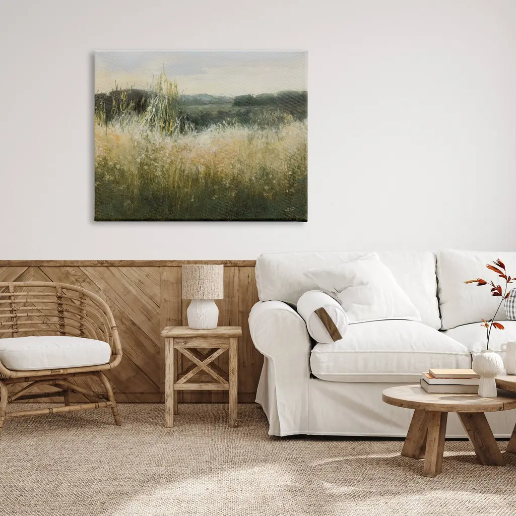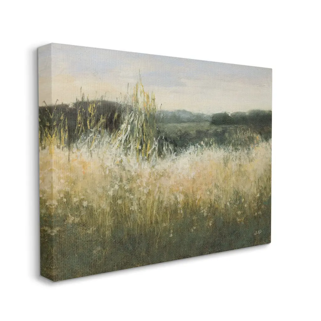 We create our stretched canvas to the highest standards. Using only the highest quality inks and canvas on Mimaki printers, we hand-cut and stretch each piece over a 1.5-inch thick wooden frame for hanging. As a result, the art comes ready to hang on the sturdy ledge with no installation required. Stupell Wall Art is made in the USA.Features: Dimensions: 20 x 1.5 x 16 InchesStretched Canvas Sizes Include Standard: 20 x 1.5 x 16 Large: 30 x 1.5 x 20 X-Large: 40 x 1.5 x 30 Oversized: 48 x 1.5 x 36Wall Art is Ready to Hang with Hardware Free Hanging. No installation required. For Easy Set Up Lean or Layer Artwork on Shelf or Against Wall.Our stretched canvas is created with the highest standards. We use only the highest quality inks and canvas on our in house Mimaki printers, and then hand cut and stretch each piece over a 1.5 inch thick wooden frame for hanging. Made In USA.Artwork Relates To: Painting, Grass, Plant, Field, Grassland, Nature, Countryside, Meadow, Rural, LandscapeDesign by Julia Purinton