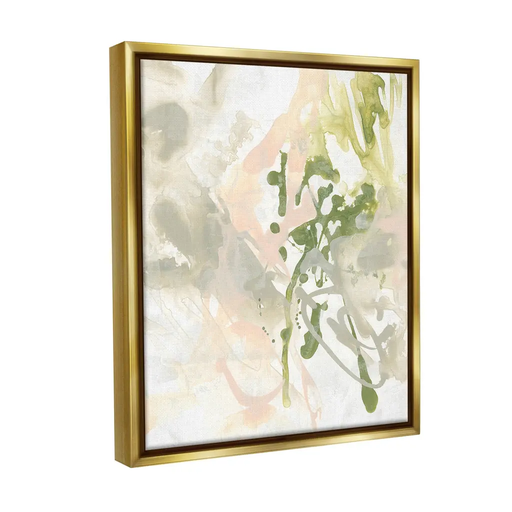 Stupell Abstract Green & Beige Framed Floater Canvas Wall Art Design By June Erica Vess - 17 X 21 - Gold