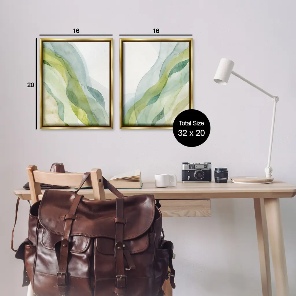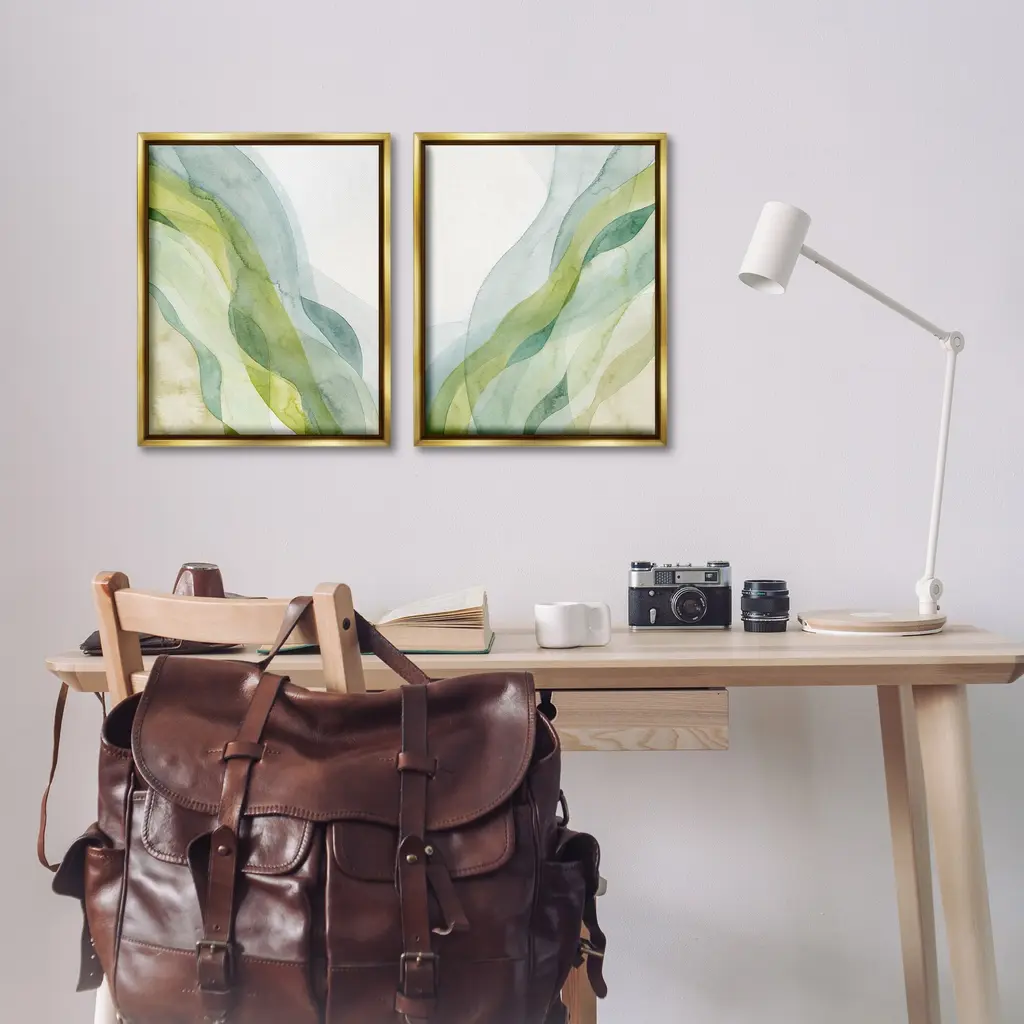 Stupell Abstract Green Waves Framed Floater Canvas Wall Art Design By Grace Popp (Set Of 2) - 17 X 21 - Gold