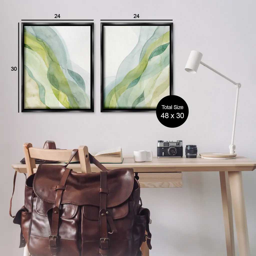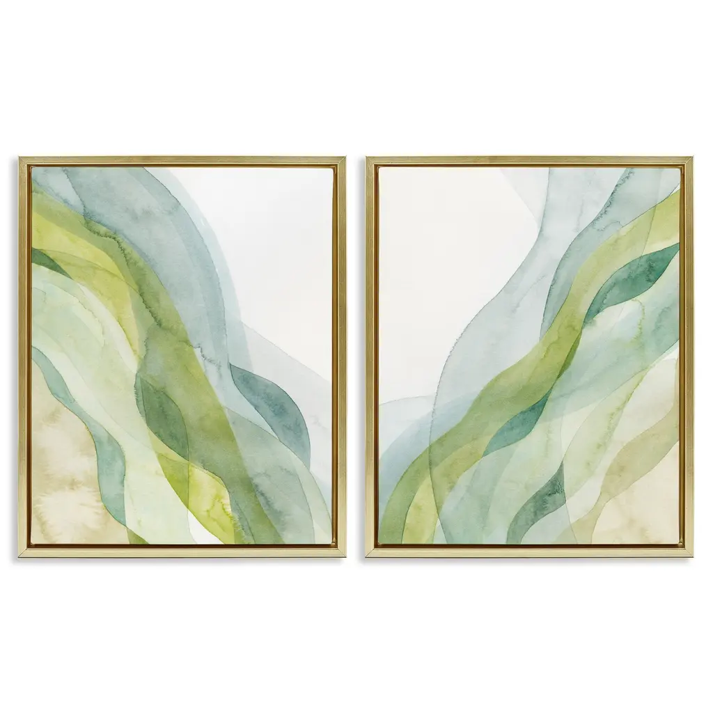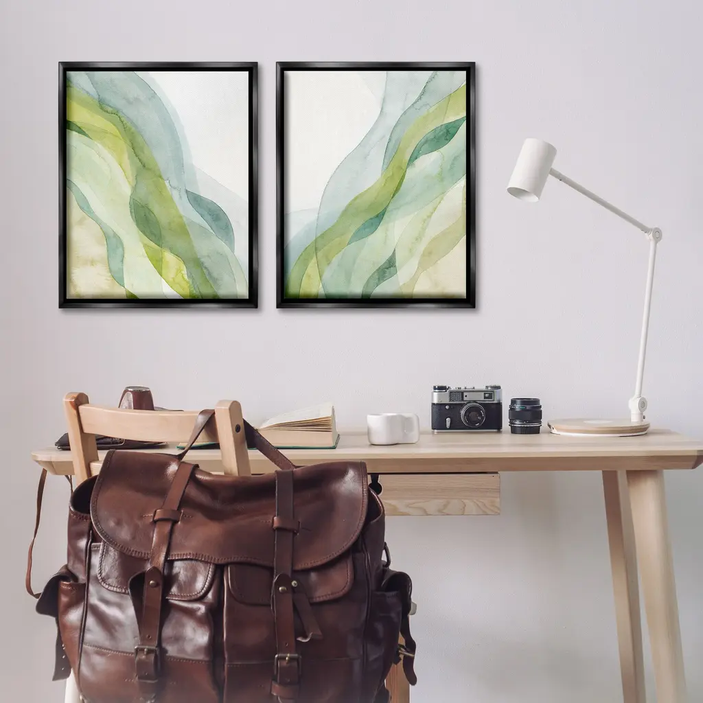Stupell Abstract Green Waves Framed Floater Canvas Wall Art Design By Grace Popp (Set Of 2) - 25 X 31 - Black