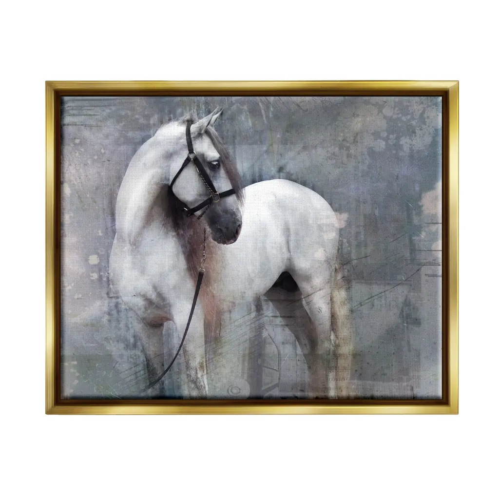 Stupell Abstract Grey Horse Stallion Framed Floater Canvas Wall Art By Susan Friedman - 30 X 24 - Gold